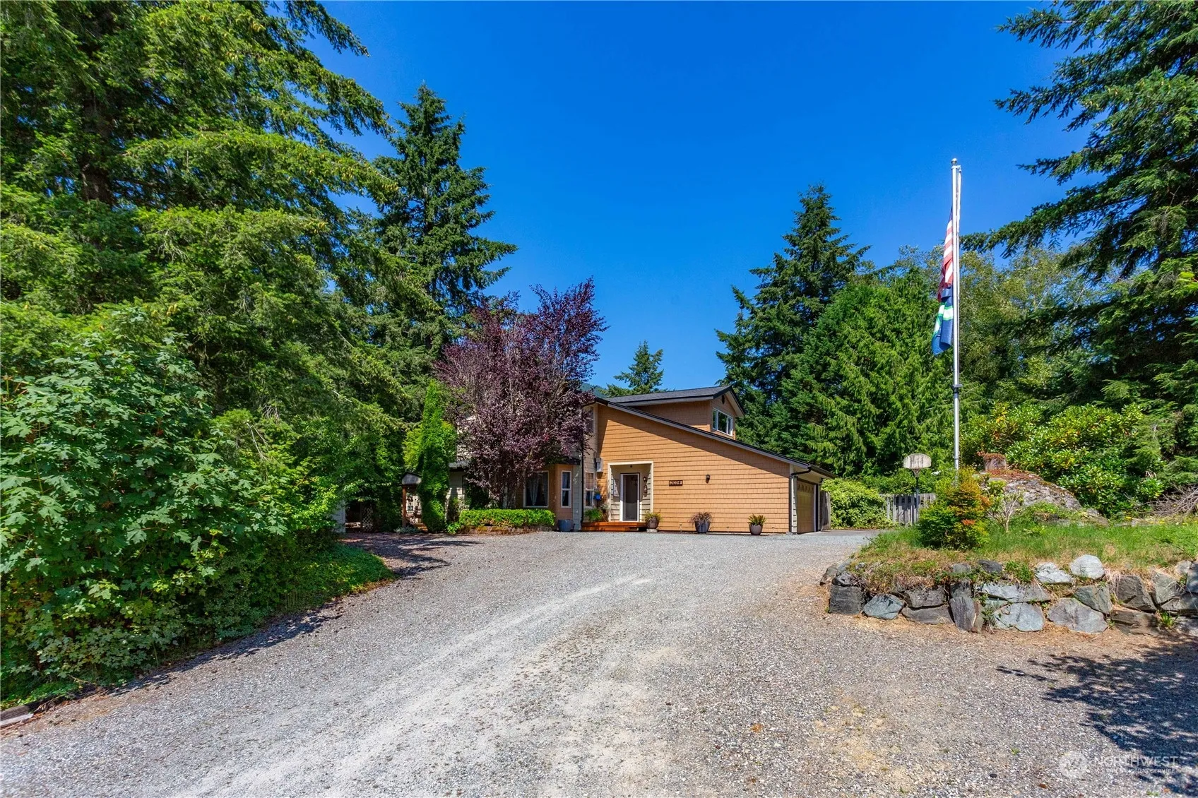 Paradise! One of a kind! Custom built by the owner this home has everything including a hot tub, wood stove in the living room, newer high efficiency gas fireplace and furnace, private decks, mature landscaping, fire pit, 2 sheds, big garage, updated kitchen and bathroom, RV parking, brass handrails, and so much charm. Two lots on the corner completely private, this is an oasis! Enjoy swimming, hiking on the trails, kayaking in the lakes, parks, and the community Clubhouse! Location, Location just 23 minutes to Burlington or Bellingham this is a wonderful place to live!