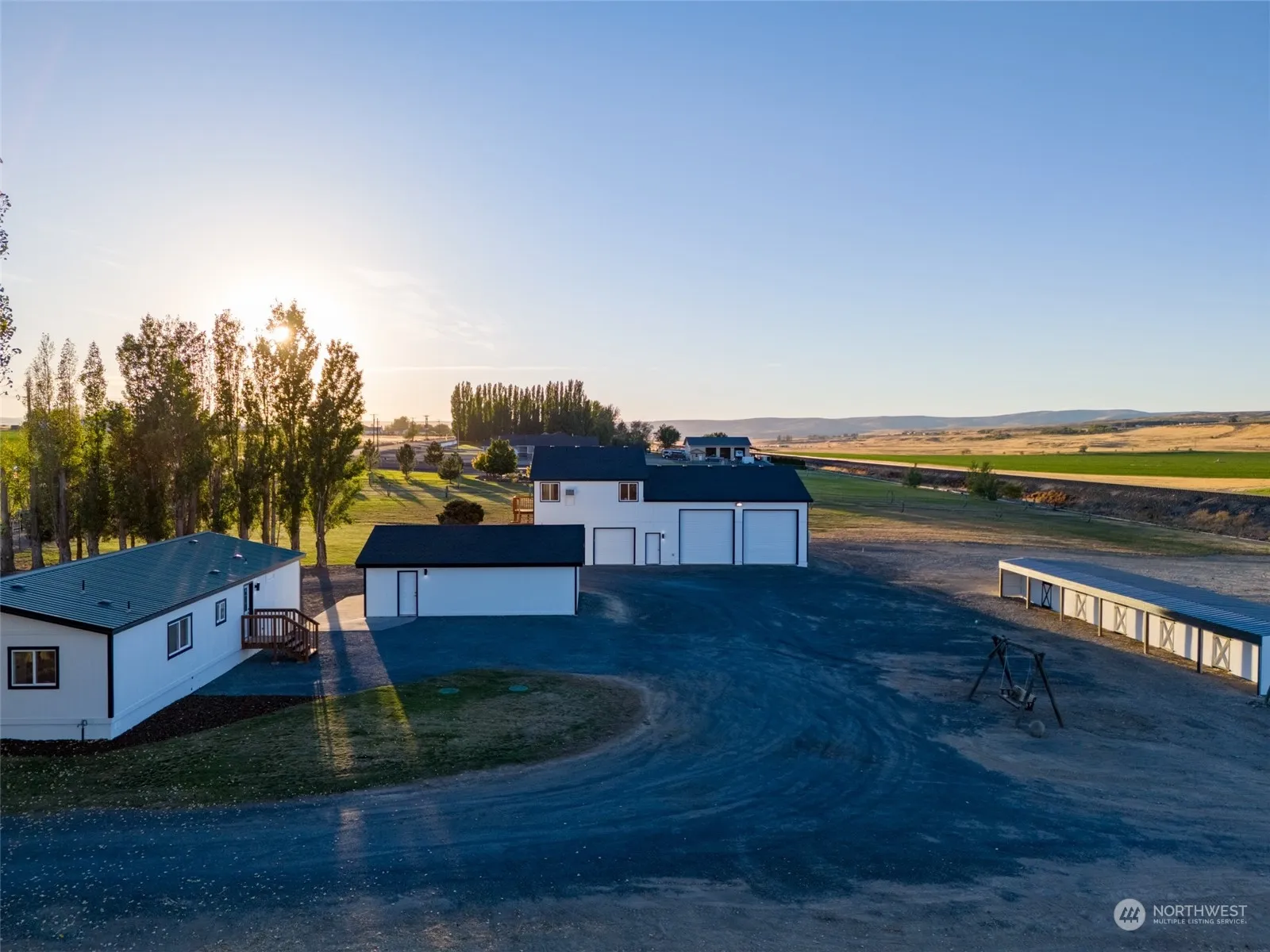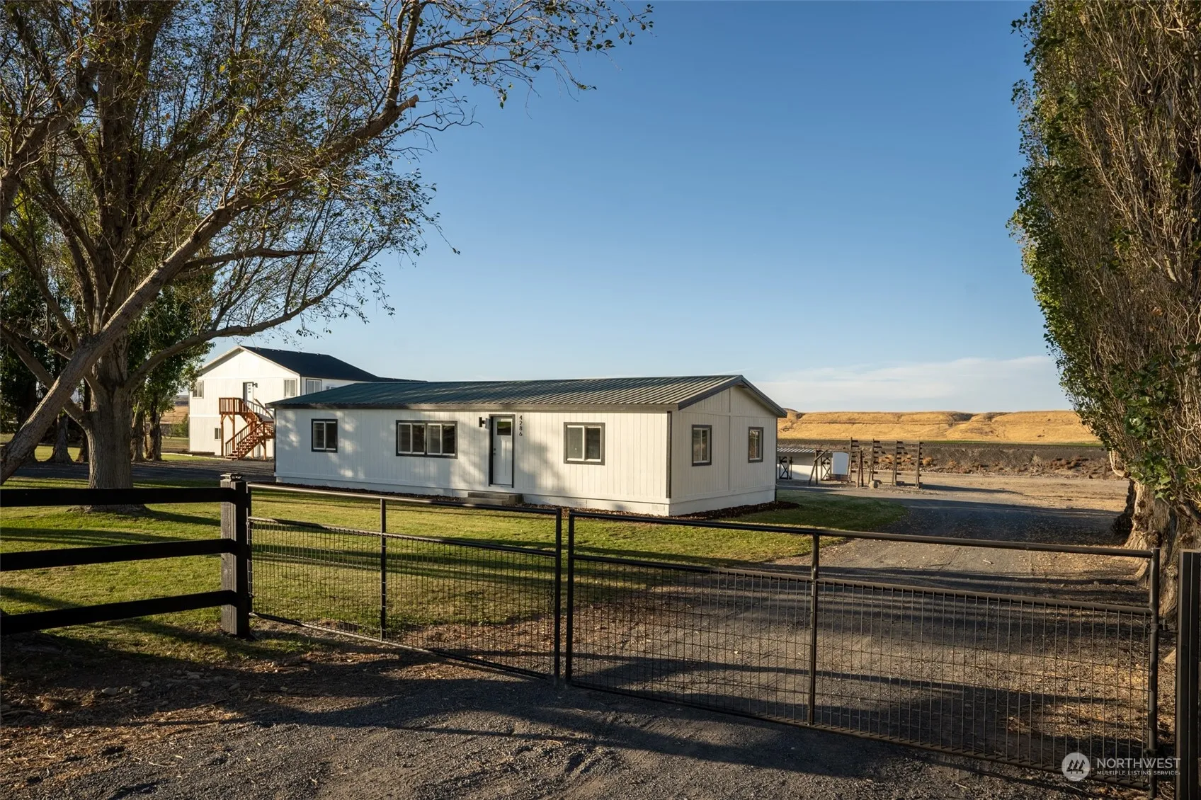 This fully updated 3 bedroom 2 bath one level home of 4 irrigated acres is the perfect hobby farm waiting! This home boast a large primary suite an open floor plan, quartz counters and new SS appliances. The home has a detached 2 car garage. The 40×60 shop offers 4 overhead doors-2 RV, 240 power, full RV hookups, heated floors, wall heaters, and 1/2 bath. Above the shop is a fully updated 2 bedroom 1 bath apartment that is light and bright with new appliances! A 72×17 horse barn with 4 stalls and a tack/feed room awaits. The barn can have turnouts on the back side with room for an arena and irrigated pasture. This property is fully fenced and has gaited entry. Conveniently located and minutes from Soap Lake. Welcome Home!