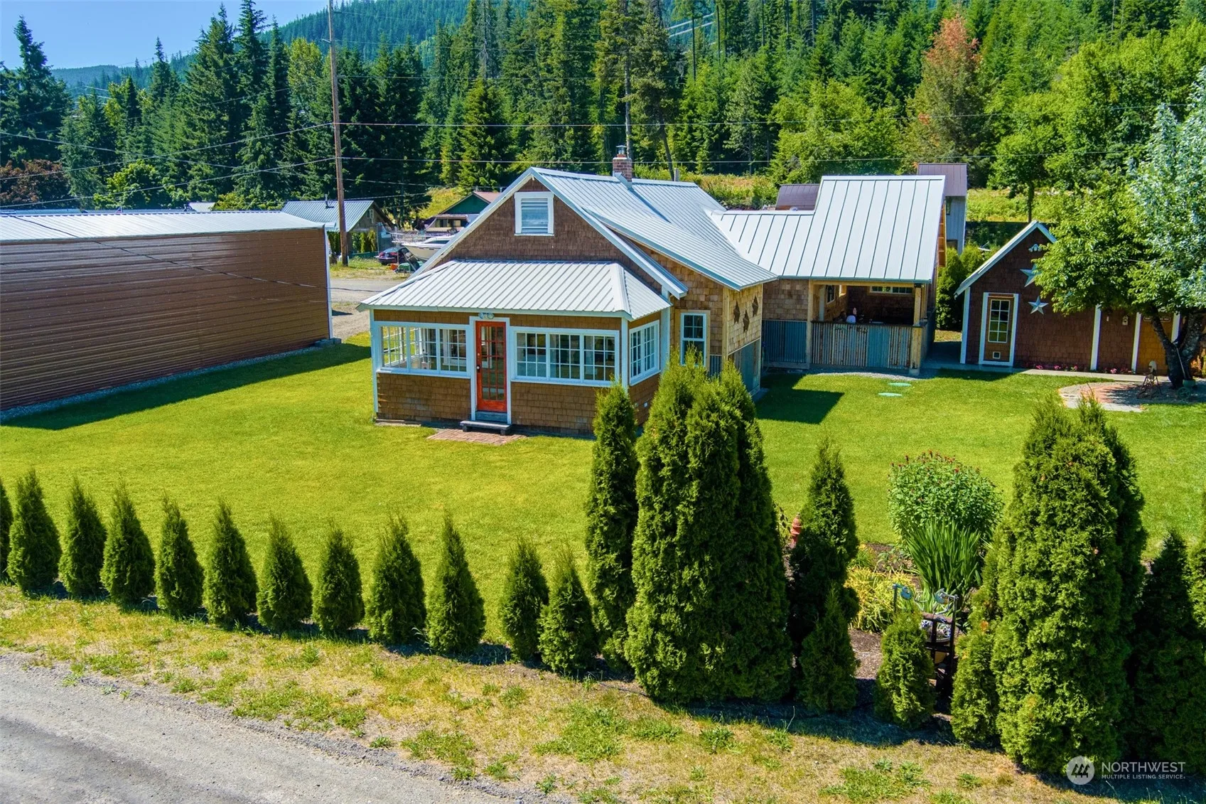 Bordering the historic Palouse to Cascade Trail, this .44 acre property features a 966 sqft main home with covered porch, heated 1,560 sqft shop (with 3 bay doors, office space, .75 bath, washer & dryer and additional 480 sqft rec room w/ wet bar & gas fireplace), 45×14 ft RV garage w/ 50 amp service, additional RV hook-up w/ two 30 amp connections, and 2 garden sheds. The newly remodeled 1 bed / .75 bath home blends 1930’s charm with modern upgrades including new kitchen cabinets, appliances, quartz counters, 3 zone heated tile bathroom and kitchen floors, carpet, pellet stove, and mini splits. Original elements include some light fixtures and fir floors. The meticulously maintained lawn includes flower beds, mature trees and fire pit.