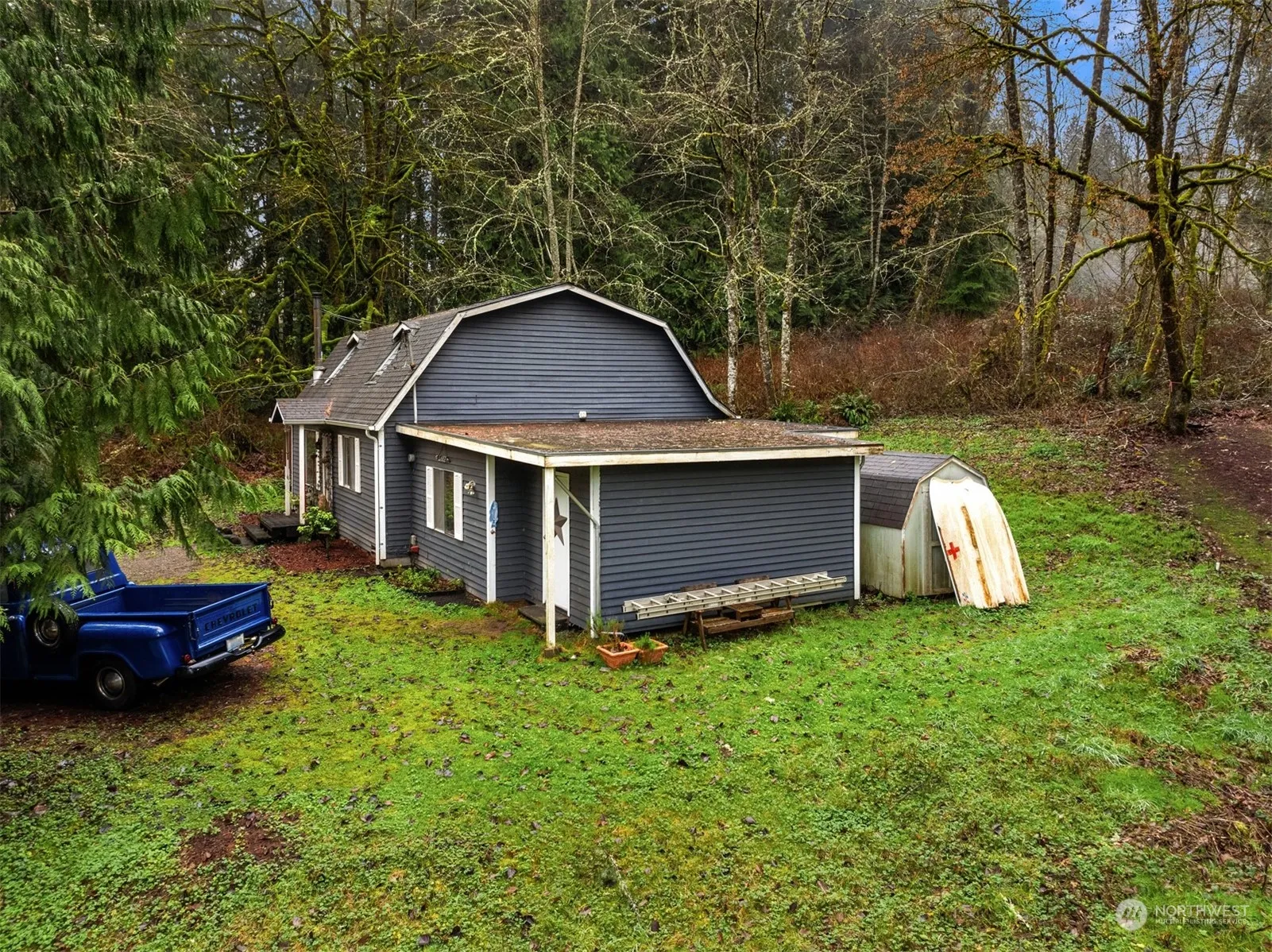 Lakeside Country Living ~ Tucked away on a secluded hillside at the end of a quiet cul-de-sac across from Lake Marcel, this 1670sf, 4 bed, 2 bath, 2-story on .31 acres is a sweat equity opportunity! Fresh paint & new flooring would transform this home. At this bargain price, there’s plenty of room to budget for additional upgrades too. Imagine the possibilities. Built in 1986, the house is solid with an ideal layout featuring living room with open staircase, wood stove & big picture window, kitchen with skylights, primary bedroom with vaulted ceilings and family room wing with 4th bedroom, private entry, laundry & 3/4 bath. Beautiful views of forested grounds from every window. Gas in street. Short walk to private community parks & beaches!