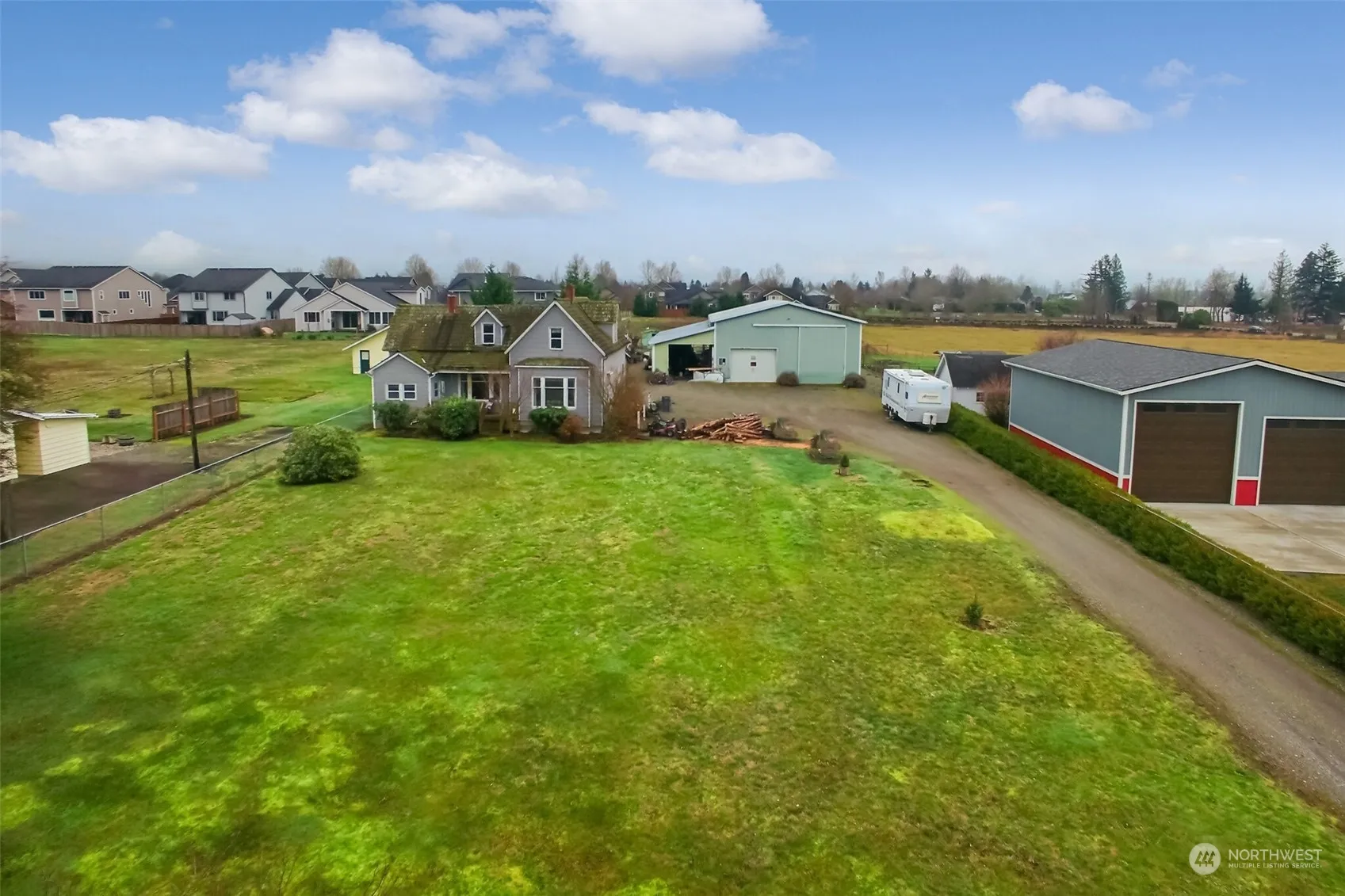Turn of the 20th century farmhouse in the city limits. Kitchen with breakfast nook, utility room & extra long pantry area, living and dining room with wood burning stove that heats the entire home. Two downstairs bedrooms w/ full bath. Upstairs has two spacious bedrooms, 3/4 bath and extra storage space. Huge Shop/Barn w/fenced livestock field behind the shop. Raised garden beds, several out buildings, wood storage shed, 836 sq ft breezeway/carport attached to the shop. Zoned R2 Property is subject to the latecomers connection to sewer. Bring this home back to life or start over and make it your own new legacy.