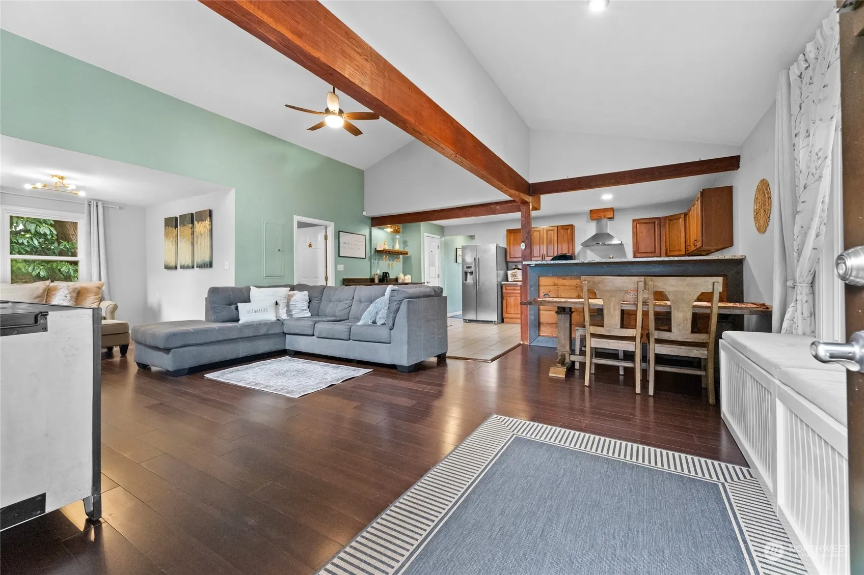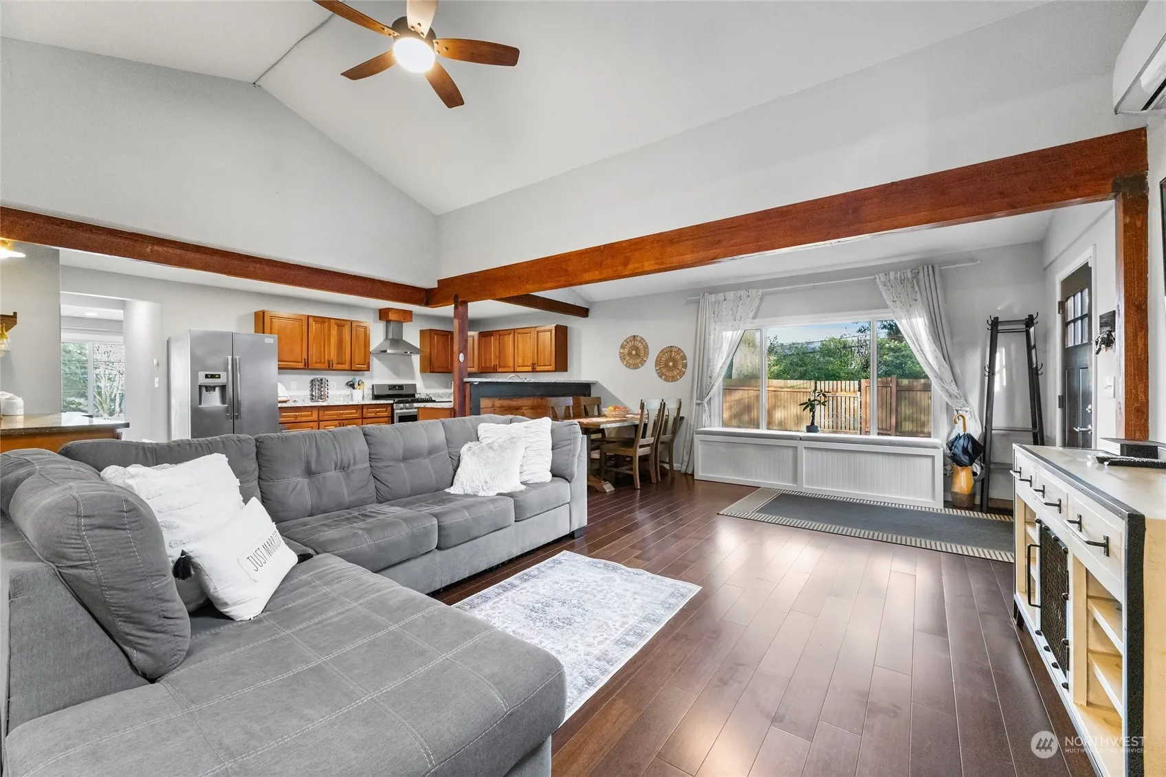 This beautifully remodeled craftsman home sits on the most private, large, fully fenced corner lot w/peak a boo views of the Sound & Olympic Mountains. The open concept kitchen w/rich cabinetry, an abundance of counter space, a coffee bar and walk-in pantry looks out to the dining room & living room w/vaulted ceiling, fireplace & separate reading nook. Main floor 2nd living room w/sliding doors to a new deck perfect for watching the sunsets & enjoying your amazing yard. Large main floor primary w/bath & fireplace. 3 more bedrooms & full bath w/laundry. 4 new ductless mini splits provide heat & AC plus a forced air furnace. New windows, DBL car garage. Walk to parks, stores, restaurants. Easy access to the freeway & JBLM. Univ Place Schools!