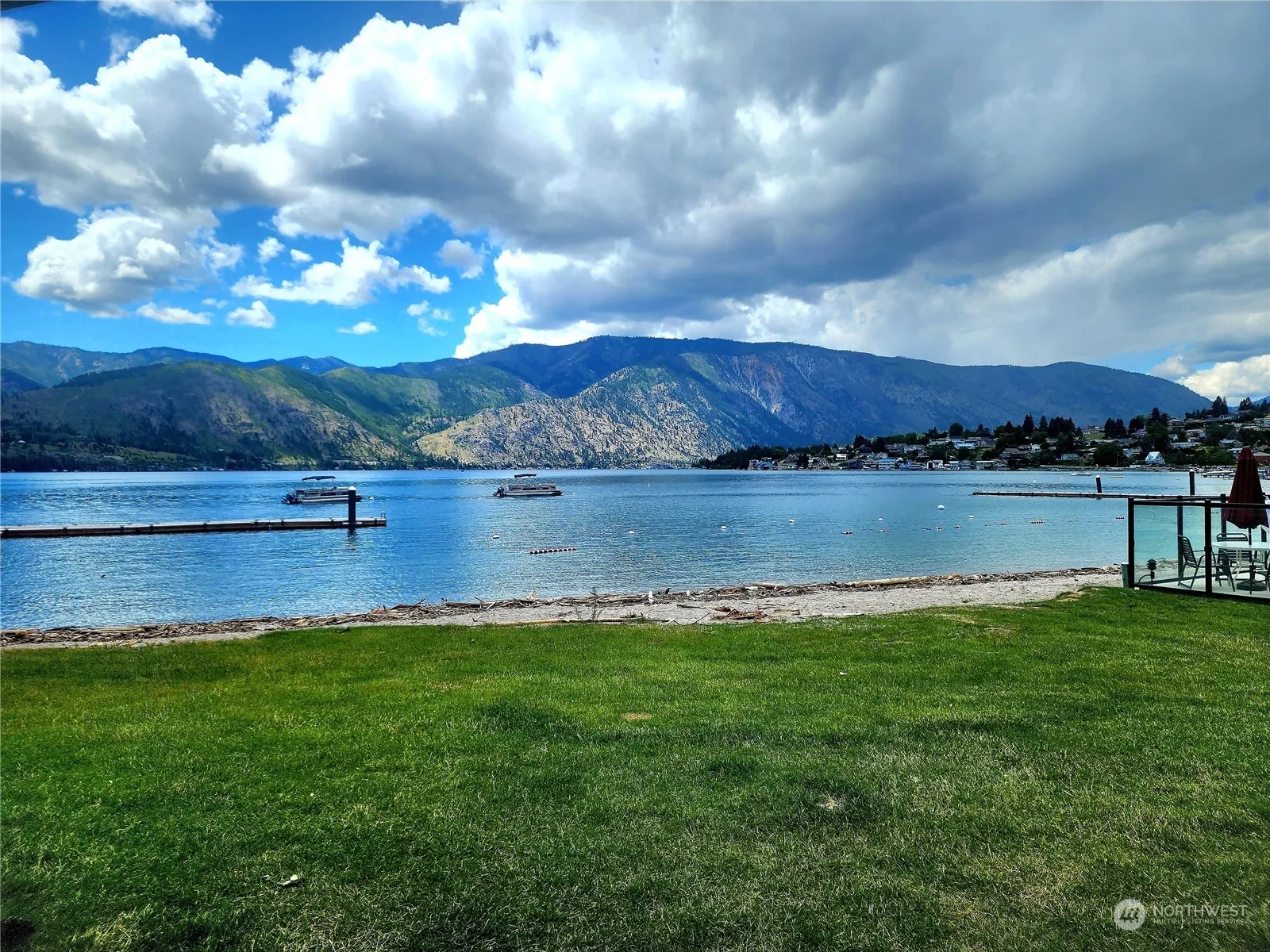 Ground Floor luxury suite with unobstructed lake & mountain views w/outdoor pool, lawn, swimming area, waterfront & boat moorage only steps away from your private patio. Buy NOW & use March 9-16, July 6-13, November 2-9 in 2025. April 5-12, August 2-9, Nov 29-Dec 6 in 2026. Holiday Week Dec 27-Jan 3, May 2-9, Aug 29-Sept 5 in 2027. Newly remodeled in 2022 with high end finishes. HOA Fees $895/quarter. 3 rotating weeks every year to enjoy all seasons. Located in the heart of all resort amenities: pickleball/tennis courts, boat moorage, swimming, children’s activity center, sandy beaches. Use your weeks, rent for income or trade & visit other places. Less than 2 blocks to downtown Manson restaurants, wineries, shopping, coffee shops & more