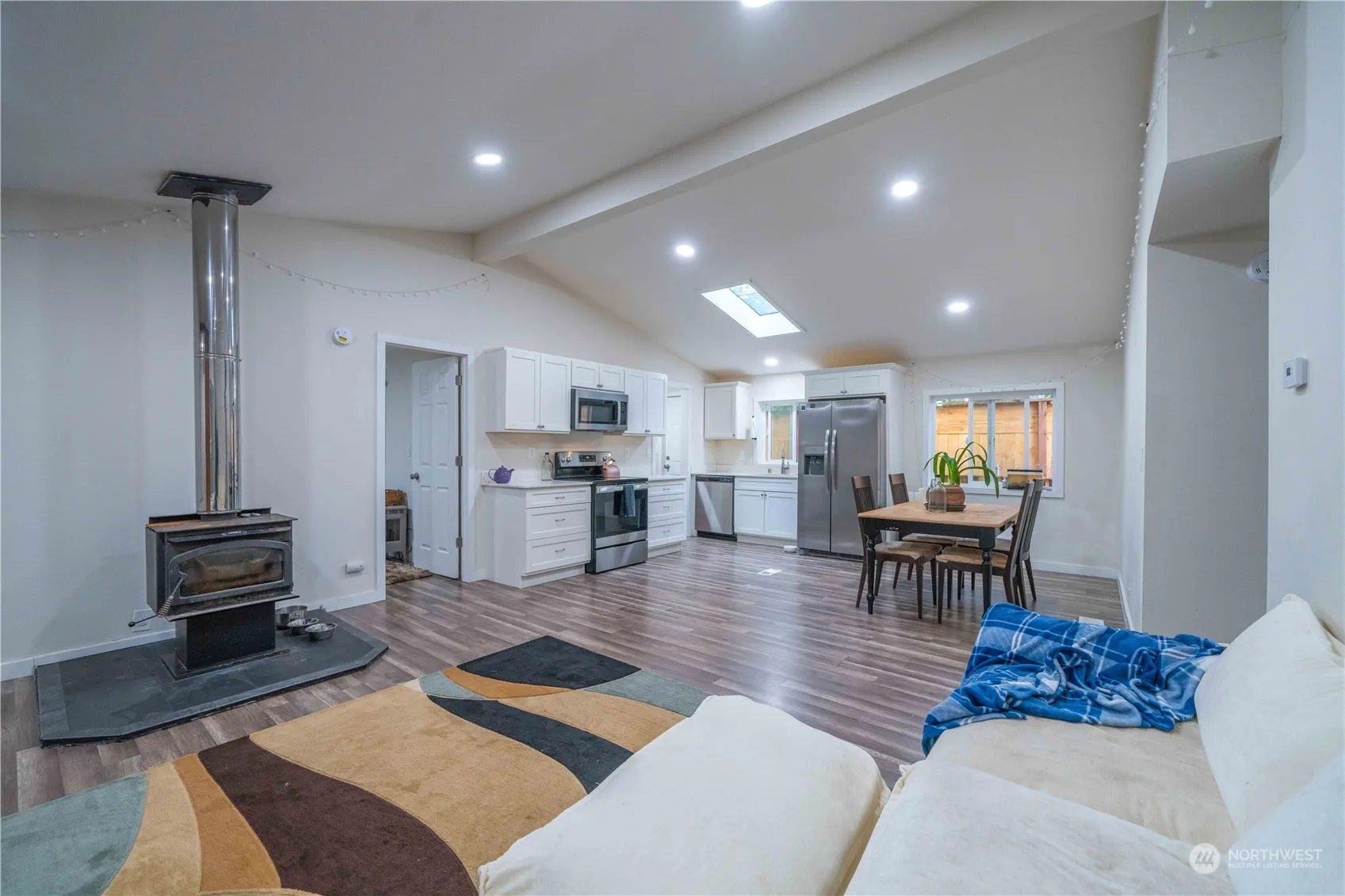 Discover Gold Bar living at its finest in this stunning home on a quiet dead-end street! Boasting vaulted ceilings with skylight, abundant natural light, and designer finishes throughout. This gem features a modern kitchen with stainless steel appliances, quartz countertops, & luxurious bathrooms. The spacious living room invites relaxation, while the expansive deck & fully fenced backyard oasis are perfect for entertaining or enjoying peaceful moments in nature. Additional highlights include a storage shed, RV parking, and breathtaking mountain views. Ideally located in the sought-after May Creek neighborhood, it’s a gateway to hiking, biking, skiing, Wallace Falls, and more outdoor adventures. Truly a serene retreat! Opportunity awaits!