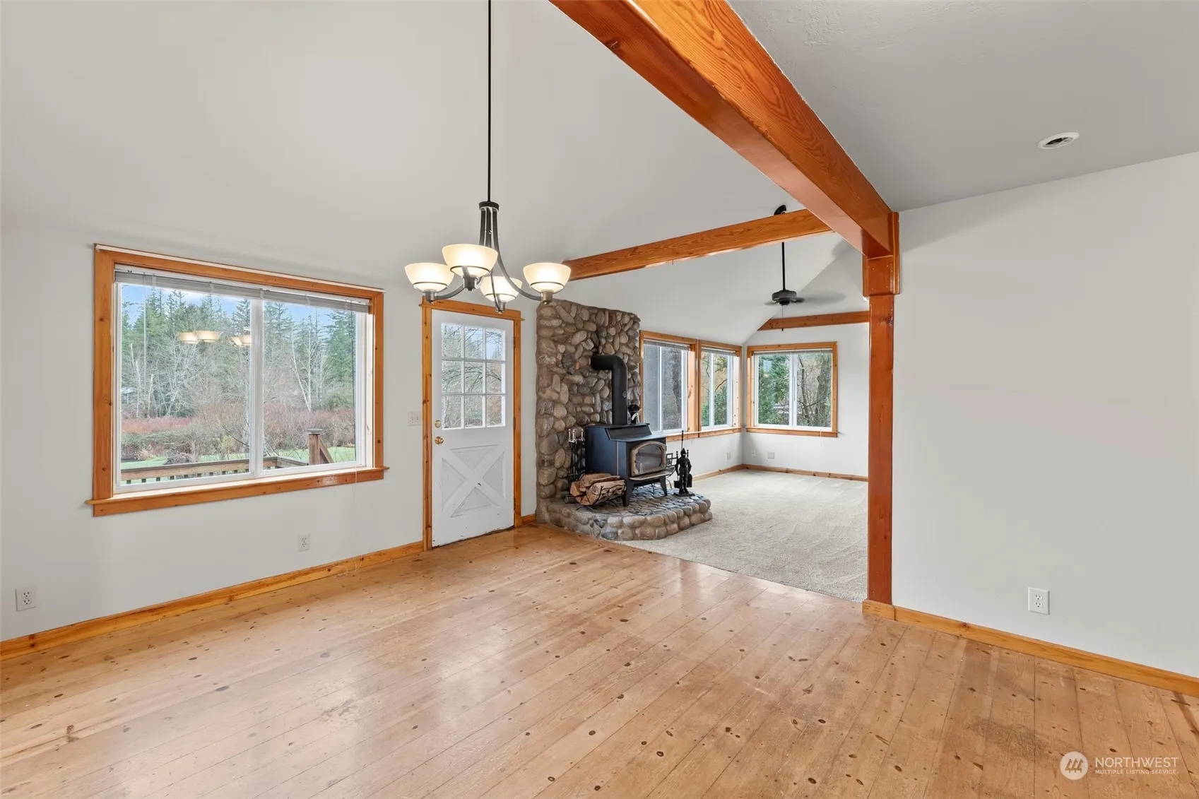 Step into this enchanting home, where modern updates meet timeless charm. Vaulted ceilings, exposed wood beams, and a cozy wood stove create a warm ambiance, while large windows showcase serene views of hills, trees, and a year-round creek. The updated kitchen and bathrooms feature granite countertops, complemented by fresh interior paint. The main-floor primary bedroom offers a peaceful retreat with nearby bathroom featuring a multiple head shower. The versatile office could serve as a fifth bedroom. Outside, enjoy fruit trees, gardening space, and creek side picnics. Enjoy an easy access to ski resort! With ample storage, a heat pump, and A/C, this private home is near highways and amenities for ultimate comfort and convenience.