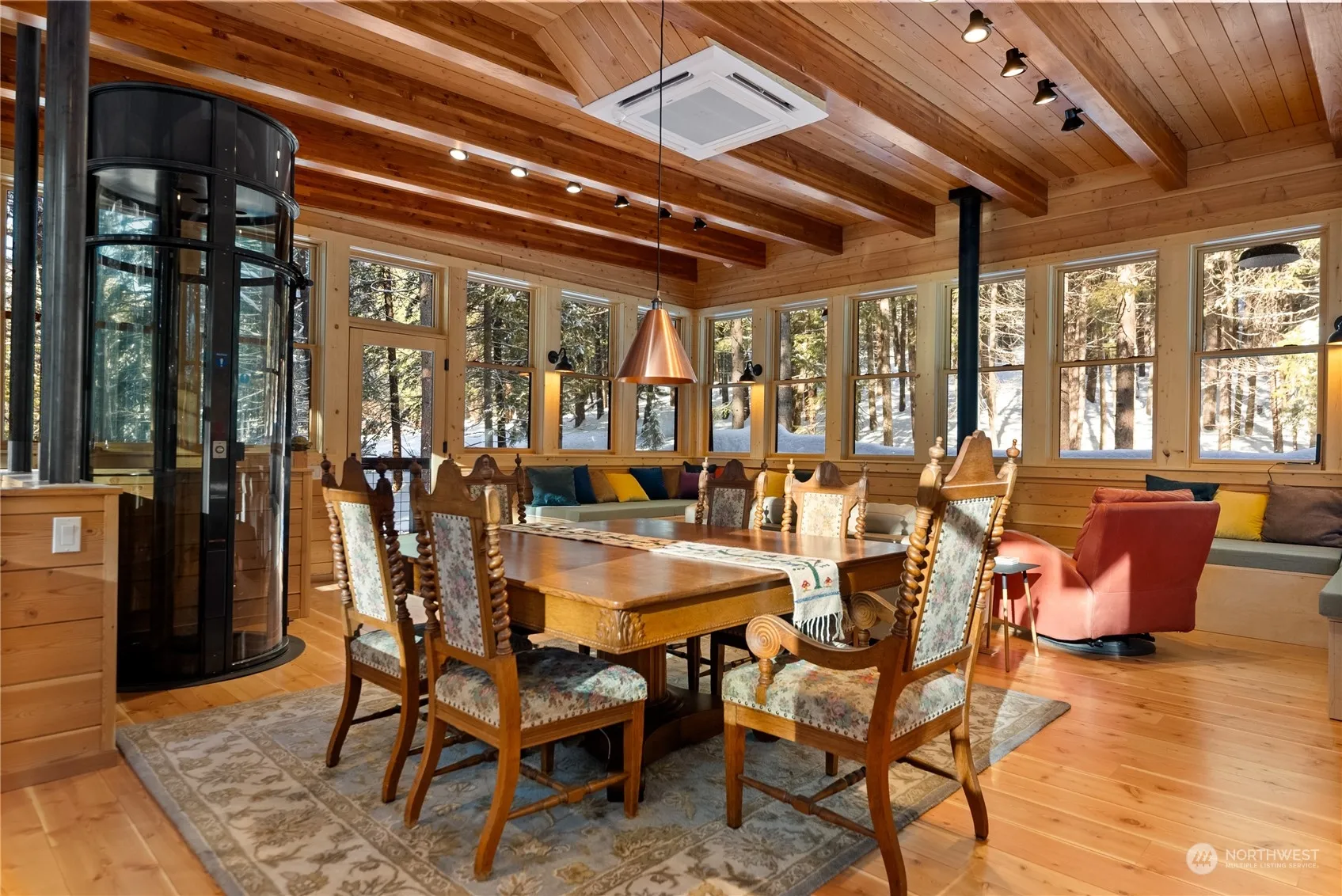 Unleash your love for the outdoors in this eco-friendly home, perfect for skiing, biking, climbing, or hiking right from your doorstep! Nestled next to the National Forest with private trail access, this ADA-friendly retreat features a 3-story elevator for easy accessibility. Crafted with Shou Sugi Ban siding from local Douglas fir, it offers breathtaking views of 7,000-foot peaks and Goat Wall. After a day of adventure, unwind in the sauna or around the fire in the Great Room. With 3 bedrooms, 2 bathrooms, and cozy window seats, there’s ample space for guests. Enjoy wildlife from the wraparound decks, and benefit from two electric car chargers for a sustainable getaway!