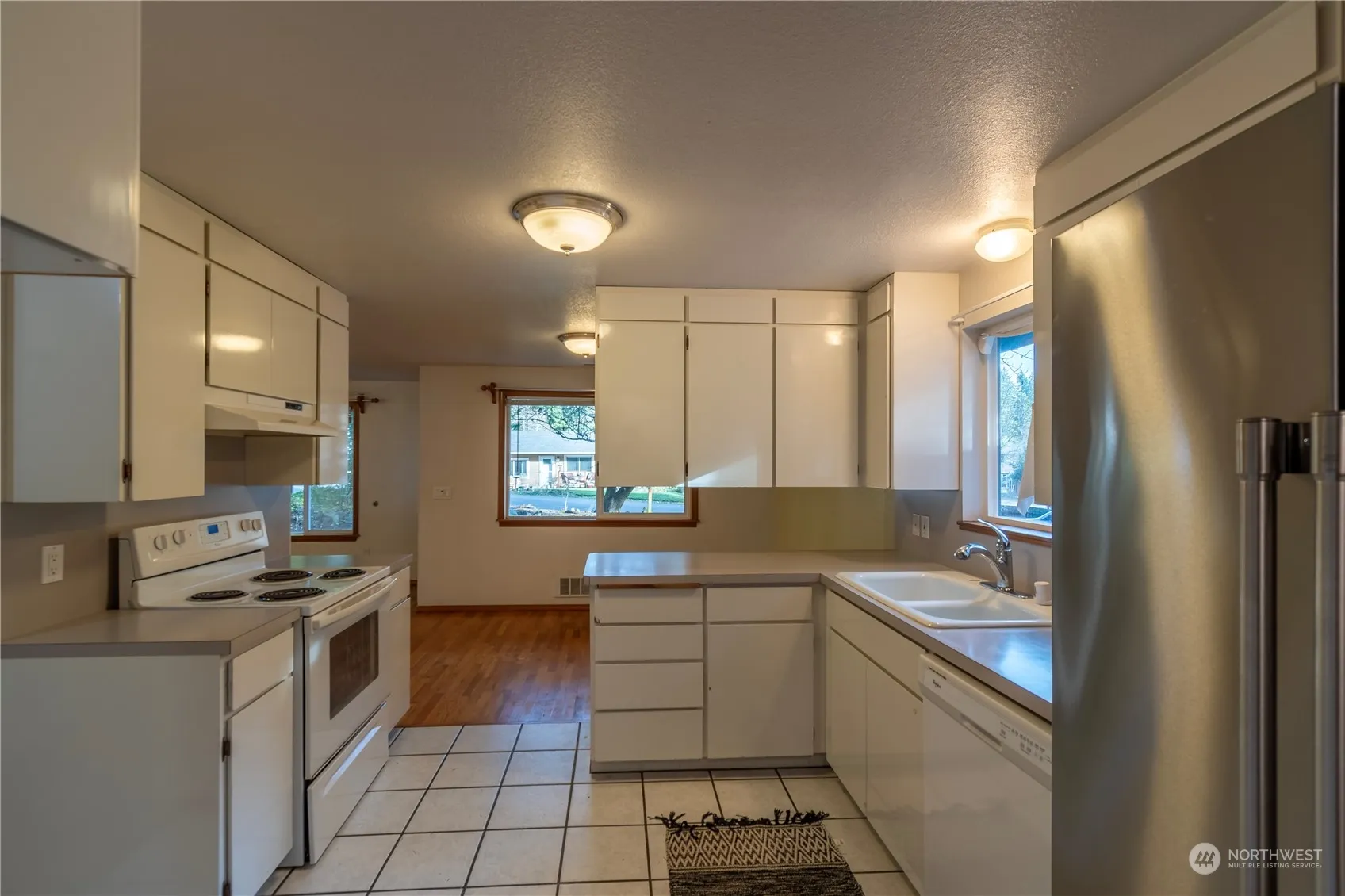 Rambler-located in the sought after Historical Community of Steilacoom, WA Large Rambler on 9,000 SQ FT Level Private Lot. Hardwood flooring through out home. Three Bedrooms-Two & One Half Bathrooms. Large living room & dining room with hardwood floors, pellet stove in living room. Kitchen in the heart of the home. Three bedrooms back of home with two full bathrooms. Large family room with one half bath. New roof 2025, new gutters 2025. Windows have been updated. Heat pump for heating. Large lot with trees in back of the home. Outbuilding for storage or shop-wired -120 & 240 electricity, shop is heated. Lots of parking along paved driveway. No HOA 1.5 blocks to Cherry Dale Elementary. Back of yard is very private.