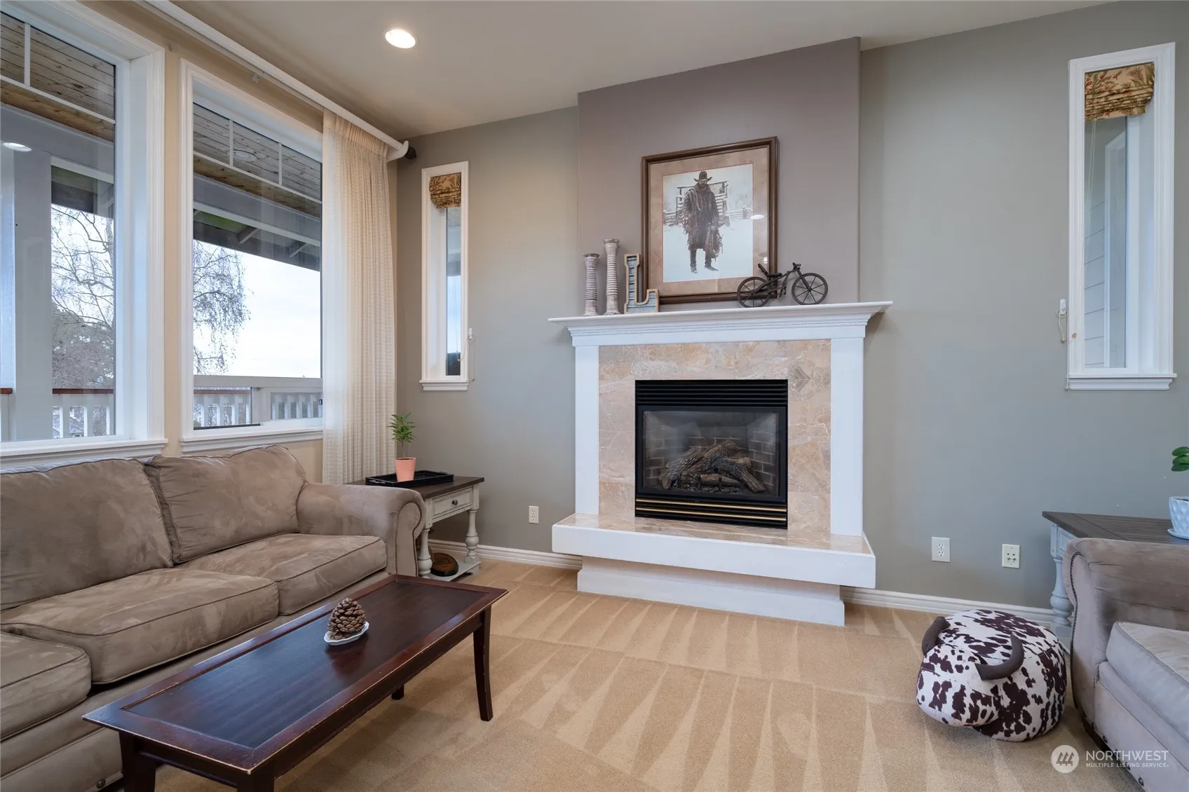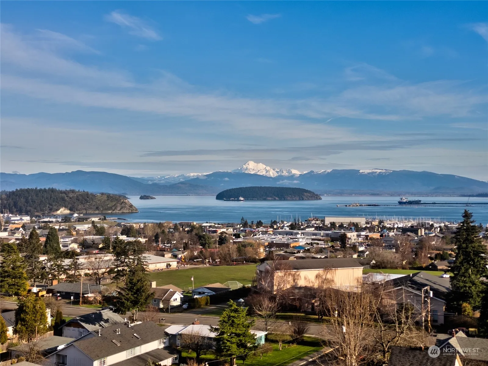 Wonderful home offers great views of Mt Baker, Fidalgo Bay and coastal ranges. Main floor features an open-concept living space. Living room flows into a well-appointed kitchen/dining-room which opens onto a large deck and spacious private patio. A welcoming wrap-around porch with entrances to both kitchen and living room, offers vantage points to enjoy the scenic surroundings. The upper level has primary/ensuite plus two bedrooms with views, versatile bonus room on this floor with a separate entrance provides additional room for home office or possible 4th bedroom. Convenient access to schools, shops & recreation ctr. Recent updates include a new roof and gutter system/2023. Double garage w/ample storage and outdoor parking space for RV.