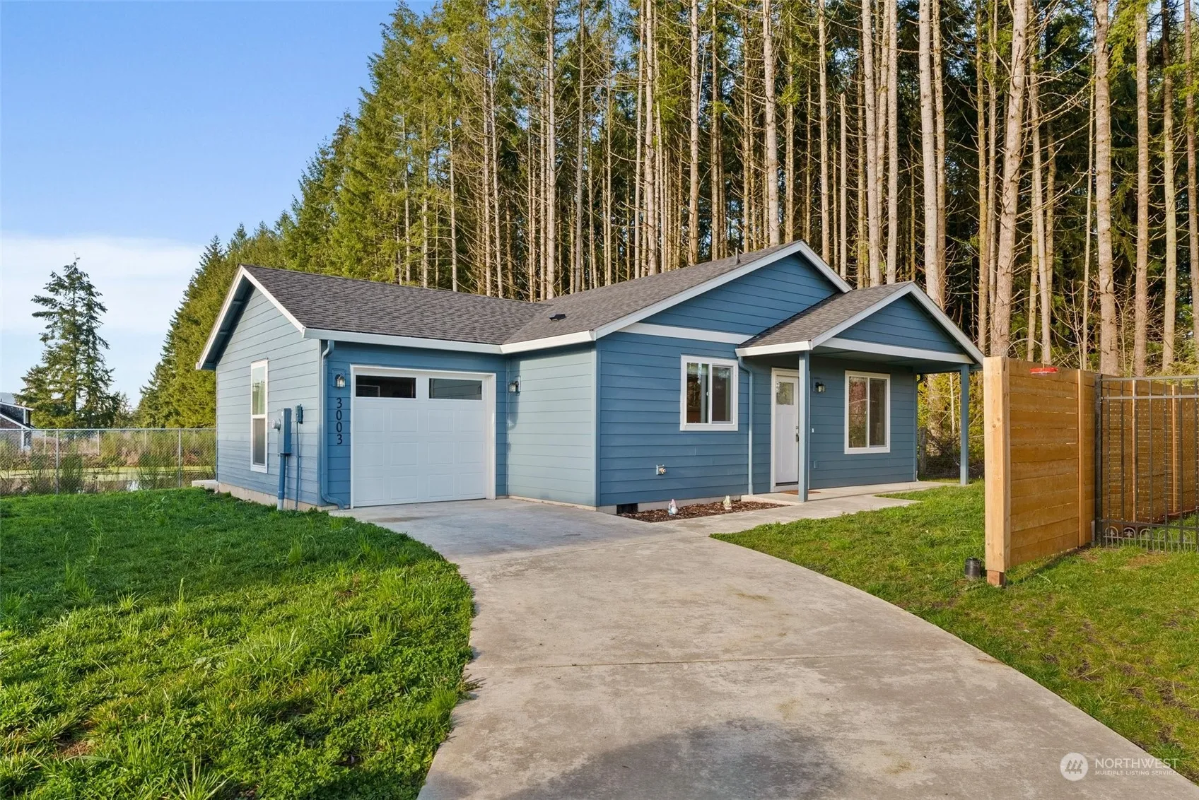 Newly built in 2023, this quality one-level home offers modern comfort in a growing community just minutes from I-5. Featuring 3 bedrooms and 2 full baths, the home includes a spacious primary suite with a private bathroom. The open-concept kitchen and living area showcases quartz countertops, stainless steel appliances, a pantry, and a versatile island. Additional highlights include a dedicated laundry/utility room and a one-car garage. Enjoy added privacy with no neighboring homes directly behind or to the side, thanks to the serene forest and adjacent storm pond. Conveniently located in Winlock, halfway between Portland and Olympia.