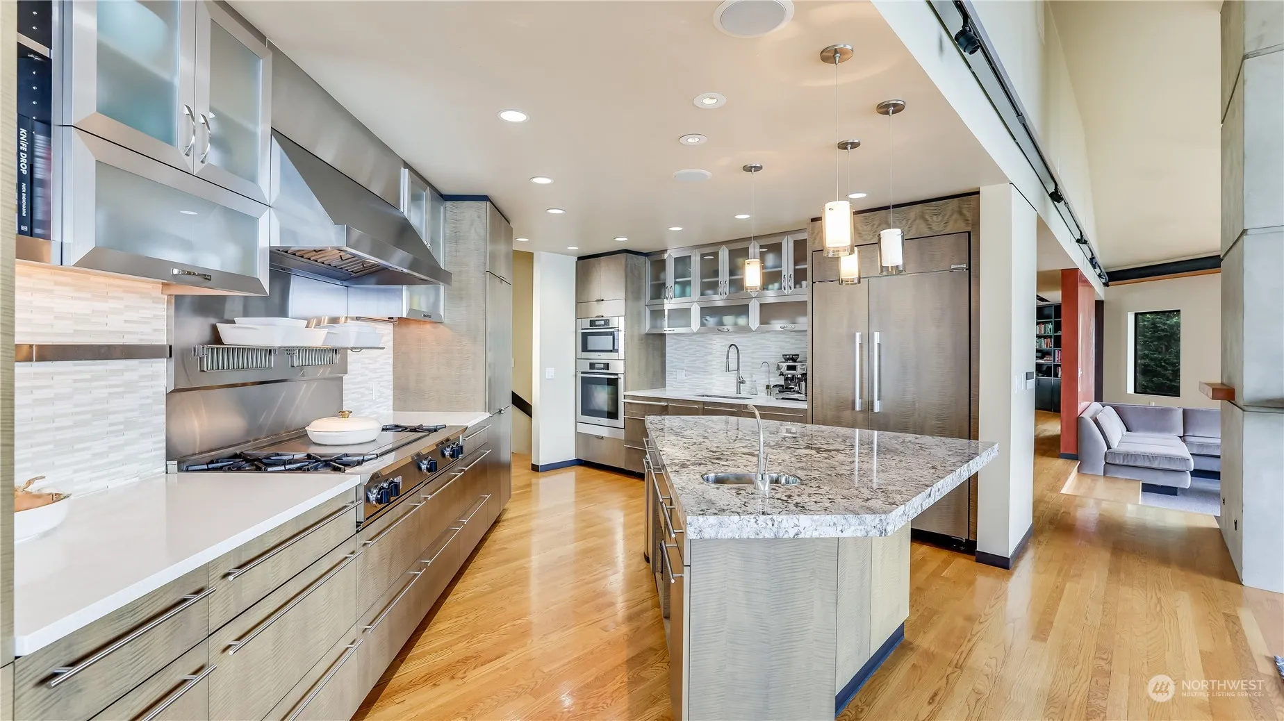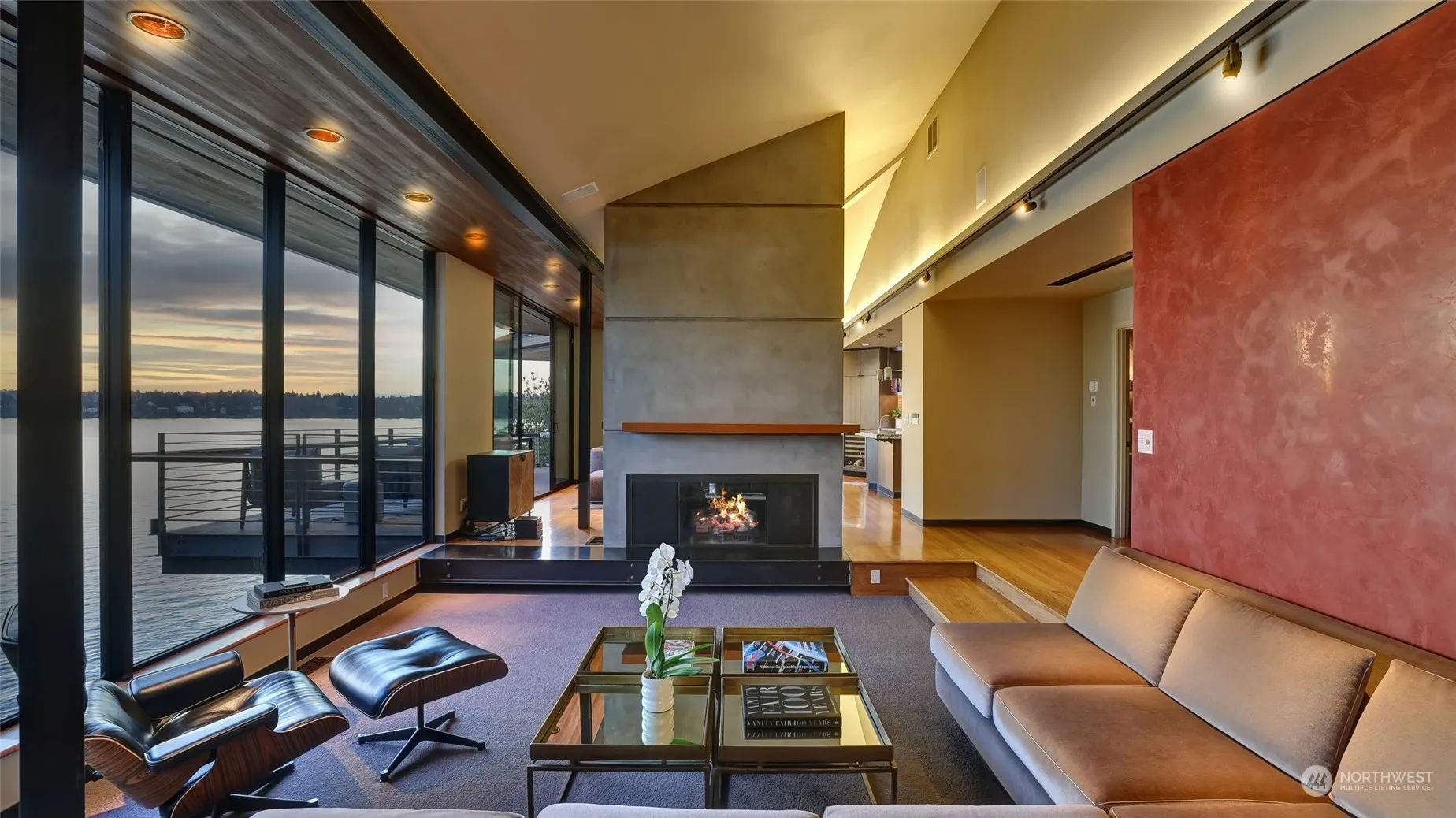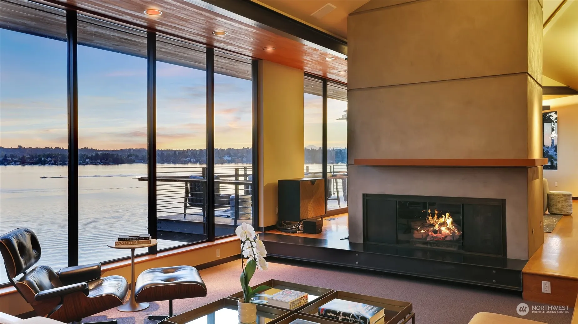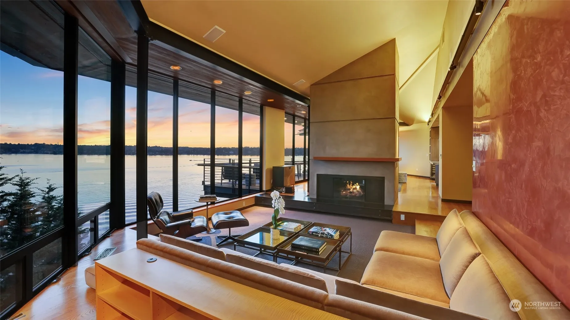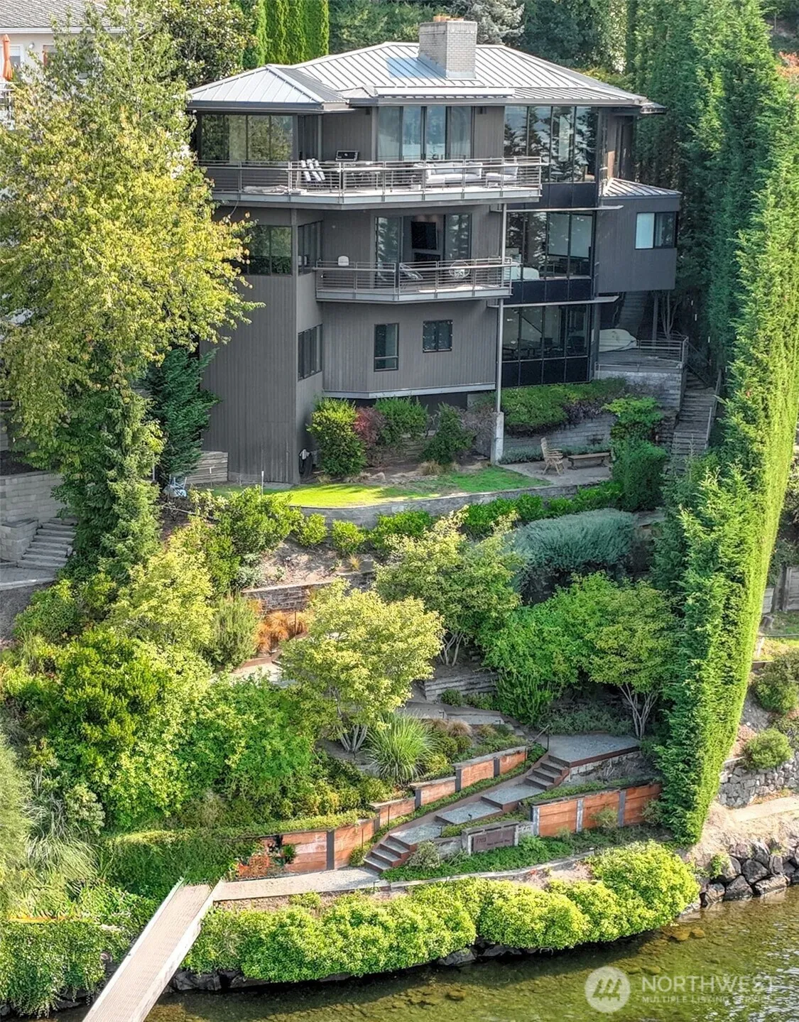 Light finds you in every space & the views are inescapable in your modern jewel-box home of glass, steel, wood & concrete, artfully reimagined by world renowned architect, Jim Olson of Olson Kundig in 2008. Mt Rainier & the Olympics are your backdrop for all-day sun along 65′ of coveted West-facing Mercer Island waterfront with new dock in 2017 & boat lift. Enter near waters edge to a masterclass of design – Vaulted gathering spaces with seamless indoor/outdoor flow for social nights by the lake, quiet & intimate zones for retreat & relaxation, primary suite & two additional bedrooms share their own floor centered around a communal family room hub, & garden-level entertaining room with additional bedroom & 3/4 bathroom.