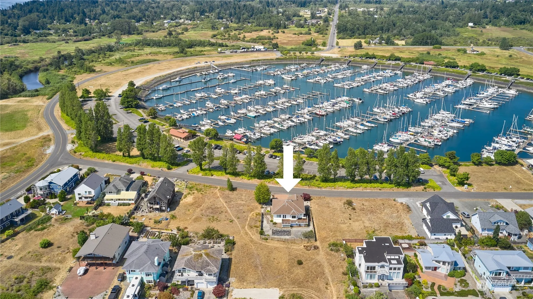 Welcome to Marina Estates nestled in the highly sought-after seaside community of Point Roberts, this custom designed 4-bed, 3-bath home offers breathtaking peekaboos water views and exceptional craftsmanship, highlighted by elegant brick accents and 9’ ceilings throughout. The floor plan is designed for comfort and functionality, featuring a spacious kitchen w/ balcony access, a cozy office with a wood stove, and a TV room for relaxed gatherings. Bright, airy bedrooms w/ serene marina views and an oversized garage. Designed for year-round living, this home boasts premium mechanical systems, a durable stone roof and a connection to the marina’s septic system. Take advantage of private beach rights and the marina, just a short stroll away.