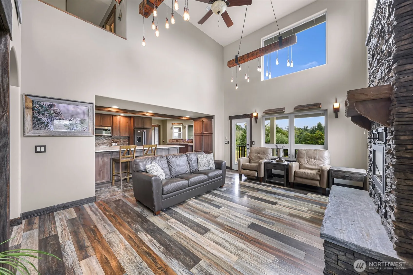 Ultra-private & upgraded modern farmhouse with a separate shop on 4.5 secluded & picturesque acres at the end of a quiet lane! Enjoy views of the park-like property w/ peekaboo views of Mt Baker from this beautiful home featuring: soaring ceilings, cozy wood burning fireplace, engineered hardwood floors, granite counters, stainless high quality appliances (including dual dishwashers & a magnetic induction oven) and a main-level primary suite w/ tiled walk-in shower. Upstairs you will find 3 additional bedrooms & a full bath. The covered front porch and rear deck overlook fruit trees & rolling fields. Plus a 24×32 shop with power/water & a loft, in addition to the 2 car garage & RV parking. Peaceful rural setting less than 10 min from I-5.
