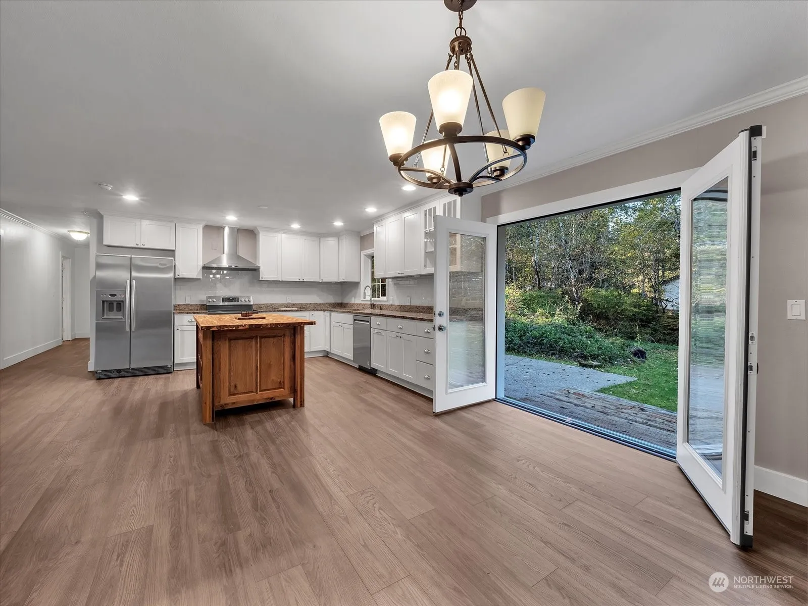 This updated 3-bedroom Grapeview home blends style and comfort in a serene, private setting. Enjoy a spacious great room with a cozy wood stove, two remodeled bathrooms—one with a freestanding soaking tub and the primary with heated floors—and a bright kitchen featuring stainless steel appliances, granite countertops, white cabinetry, a butcher block island, and recessed lighting. New LVP flooring and fresh paint add a modern touch throughout. French doors open to a tranquil backyard oasis, perfect for relaxation or entertaining. An attached shop and shed provide ample storage and workspace. On the bus line to Puget Sound Naval Shipyards, the home offers both privacy and accessibility. Privacy, style, and relaxation await at Deer Haven!