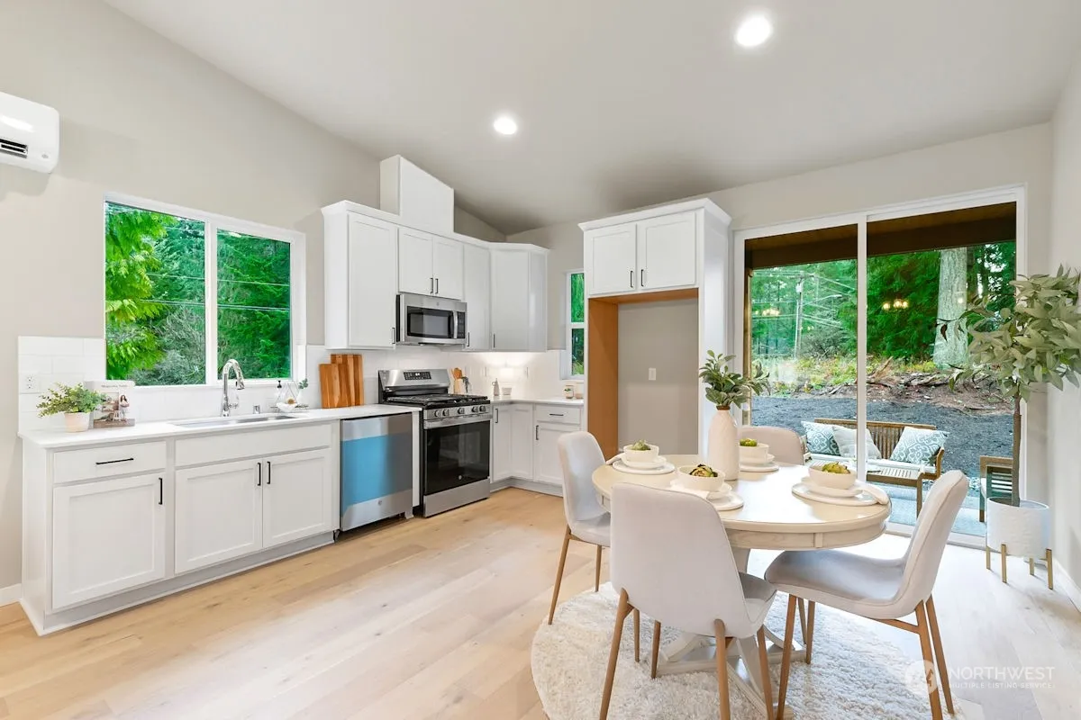 Welcome to The Reserve at Marine Drive! The Serena is a beautifully designed 1198 sqft home featuring 3 bedrooms, 2 bathrooms, a 2 car garage, and a covered patio perfect for outdoor entertaining. Standard finishes include SS appliances, gorgeous engineered hardwood flooring, white painted millwork and 5 panel doors, shaker style cabinets with crown molding, and quartz countertops with a beautiful tile backsplash in the kitchen. The ductless mini split system with supplemental electric wall heat is perfect for heating and cooling. Primary suite features an en suite bathroom with quartz countertops and a tile shower. FULLY FENCED YARD UPGRADE INCLUDED!! FANTASTIC OPPORTUNITY AWAITS!