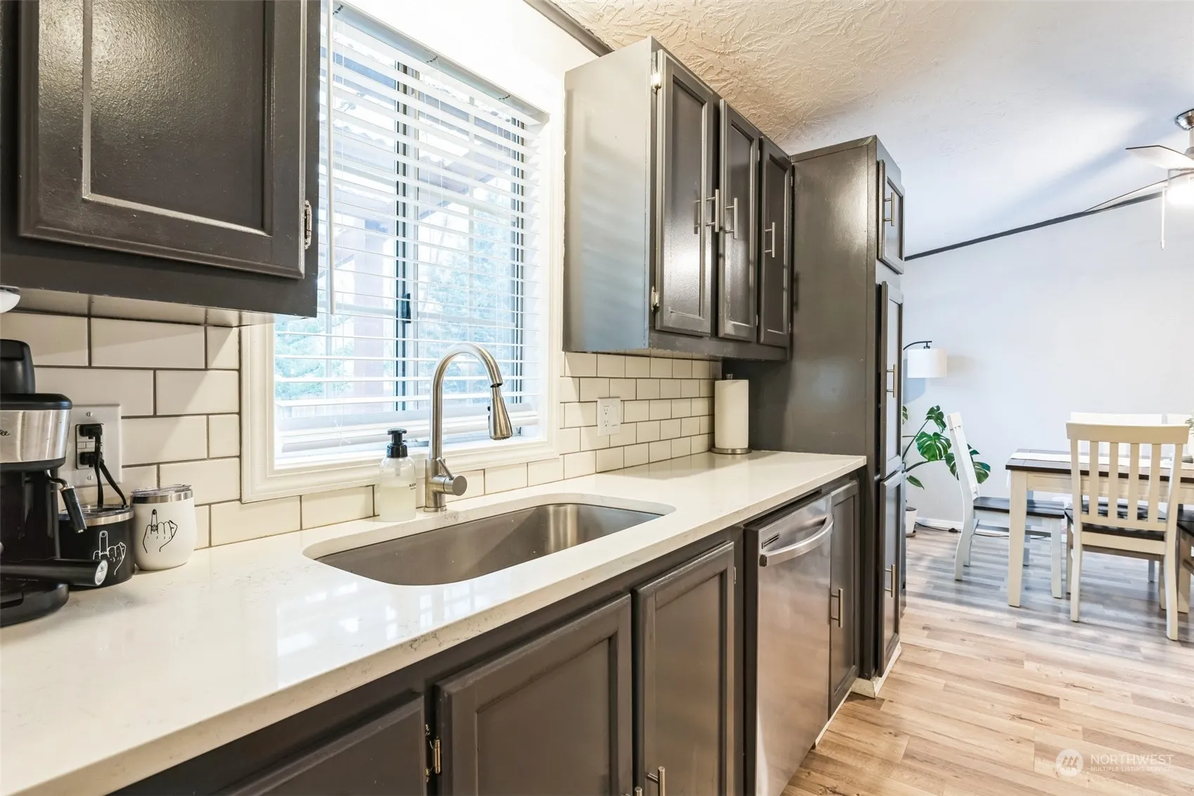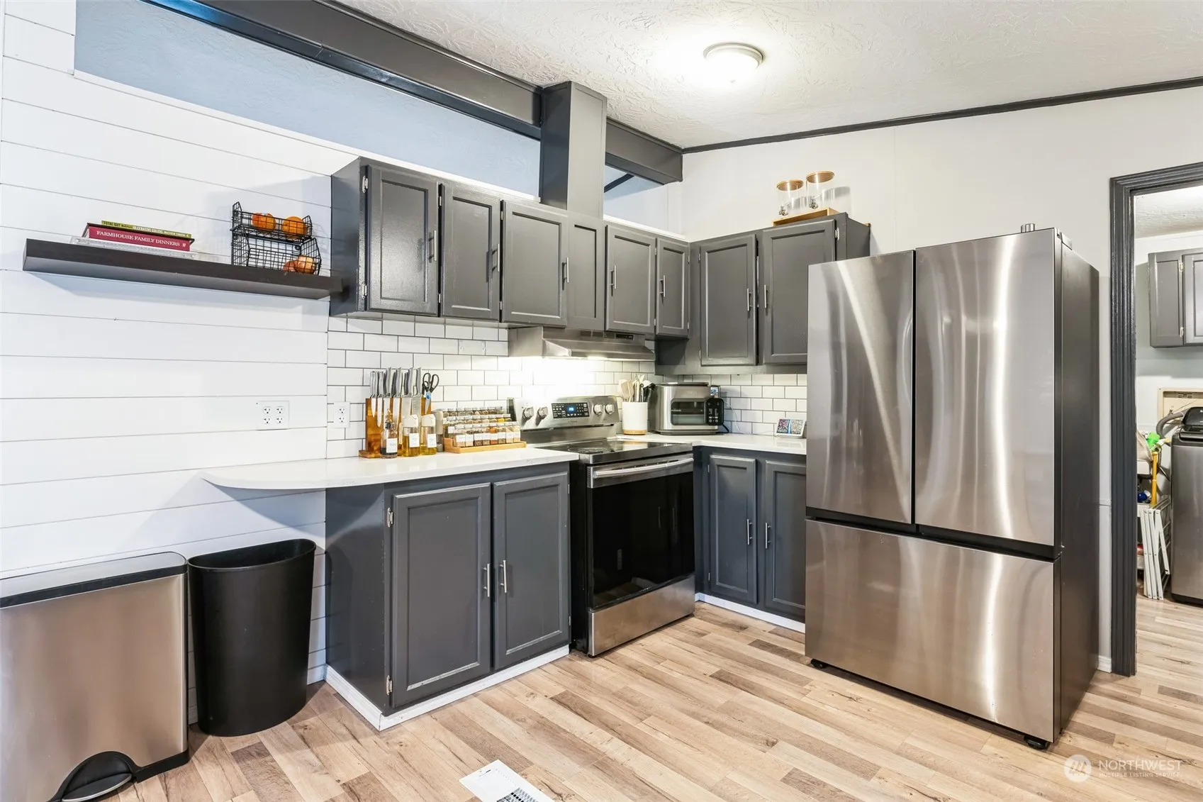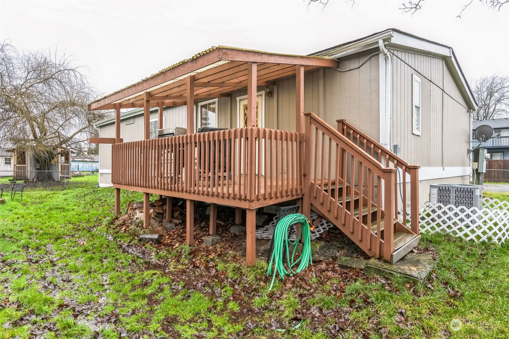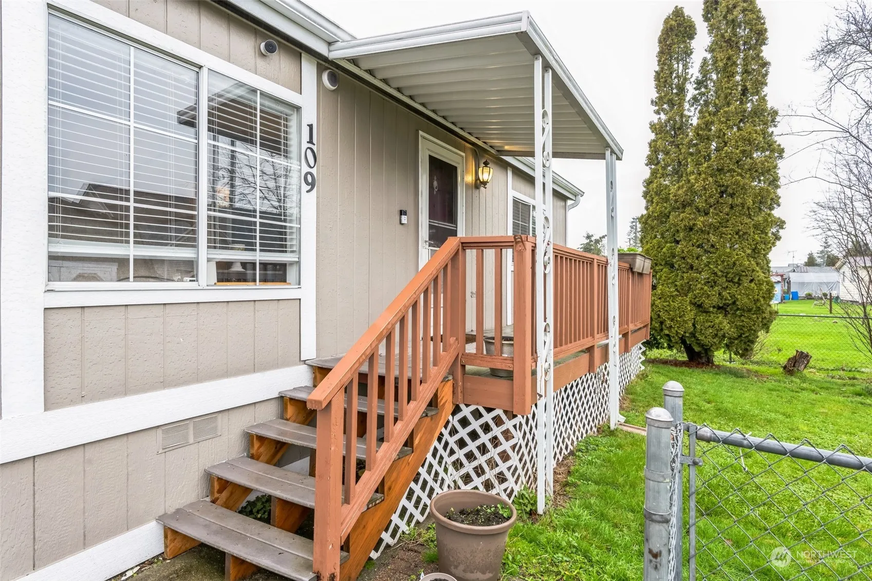 Charming, updated manufactured home in a quiet, secluded neighborhood on a fully fenced lot. This home boasts vaulted ceilings, an open LR/DR floorplan, ceiling fan, and a well-appointed kitchen with granite countertops, eating space, and newer stainless steel appliances. The large master bedroom offers privacy, located opposite the two additional bedrooms. Recent updates include a heat pump with A/C for year-round comfort. Additional features include a utility room, covered back porch, and large storage shed. Conveniently located near freeway (167), Sounder Train station, and Boeing. A must-see, move-in ready home!