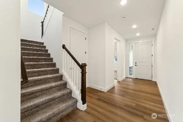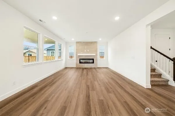 This two-story plan with 3 Car Garage features a main floor bedroom which you can conveniently option as a study and 3/4 bath with walk-in shower. Beyond the entryway, a great room with a cozy fireplace flows into an accommodating kitchen with a walk-in pantry, built in tech center office space, and adjacent mudroom. The kitchen has an expansive quartz island and opens to an elegant and light filled dining room—and access to a large, covered patio perfect for entertaining! The second floor offers a huge open loft space, full bath, utility room with cabinetry for additional storage. Two additional bedrooms, and a large primary suite and spa-like bath leads you to an oversized walk-in closet.