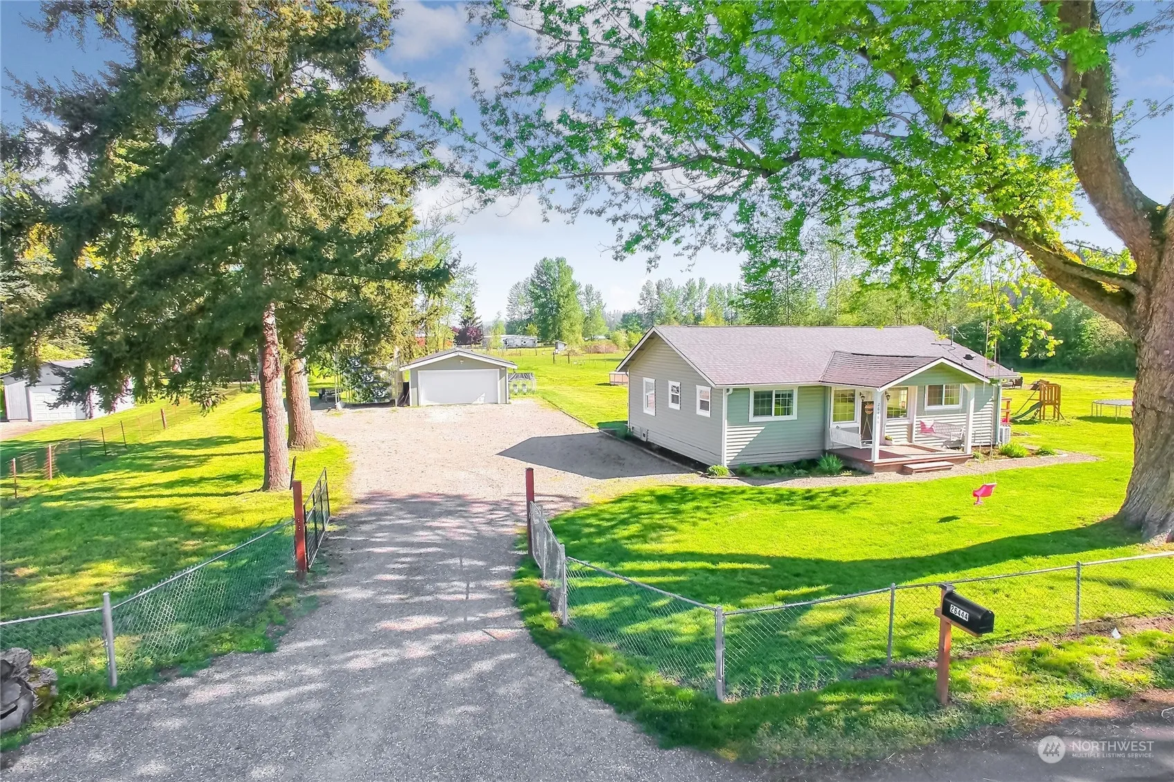 Level 2+acre lot in city limits! remodeled 3-bed, 2-bath home with light & bright kitchen, quartz countertops, full tile backsplash, gas stove & stainless hood & two toned cabinetry.Main bath remodeled with double sink quarts vanity, two spacious secondary bedrooms.Primary with remodeled bath & slider to deck.Oasis where you can enjoy serene rural living without sacrificing the convenience of being close to downtown.Fire-pit, gazebo, horseshoe pit are perfect for gatherings with friends.This outdoor space is designed for both peaceful moments, entertaining & providing the perfect backdrop for creating lasting memories.Two car detached garage, covered RV parking & space for all of your toys! New roof to be installed prior to closing!
