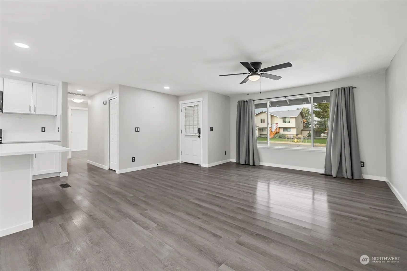 Discover your dream home in this charming 3-bd, 2-bth rambler, complete w/RV parking & in-ground pool w/new pool liner! Beautiful laminate wood flooring flows seamlessly through living areas, creating a warm & inviting atmosphere. Spacious kitchen is perfect for culinary adventures, while separate dining area & cozy family room w/a wood fireplace offer ideal spaces for gatherings & relaxation. Kitchen has been updated w/new appls, new cabinets, quartz countertops w/quartz backsplash & just painted. Retreat to the primary bedroom, featuring private access to hall bath for added convenience. Step outside to your fully-fenced backyard oasis, where covered patio & separately fenced pool area await, perfect for outdoor activities & entertaining.