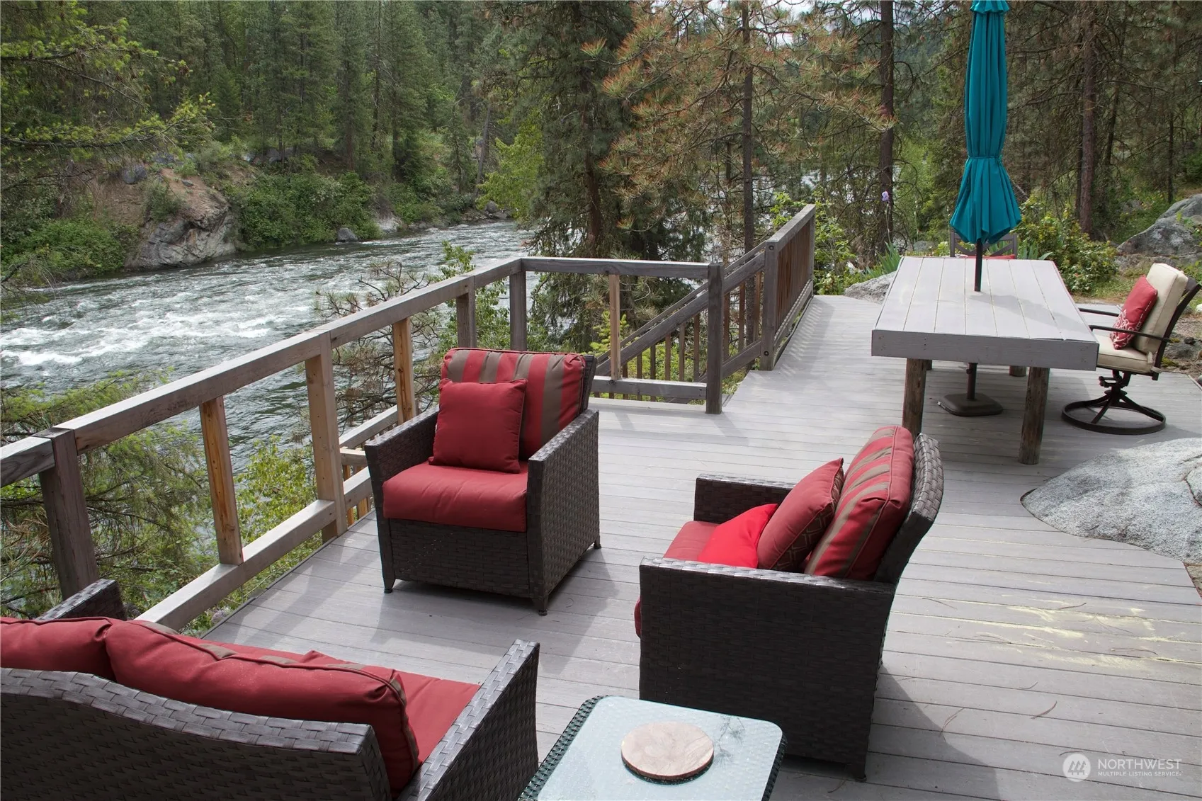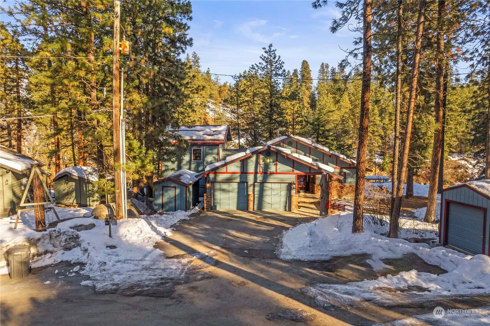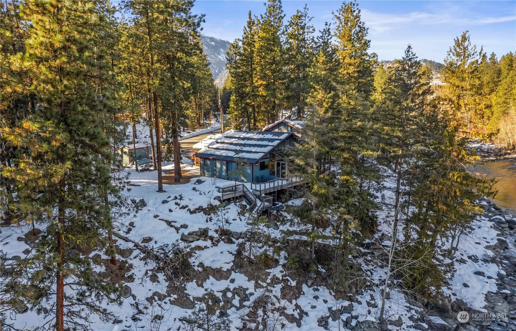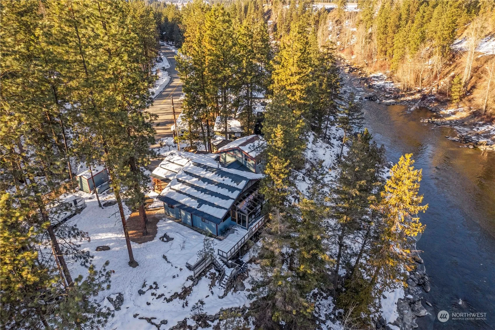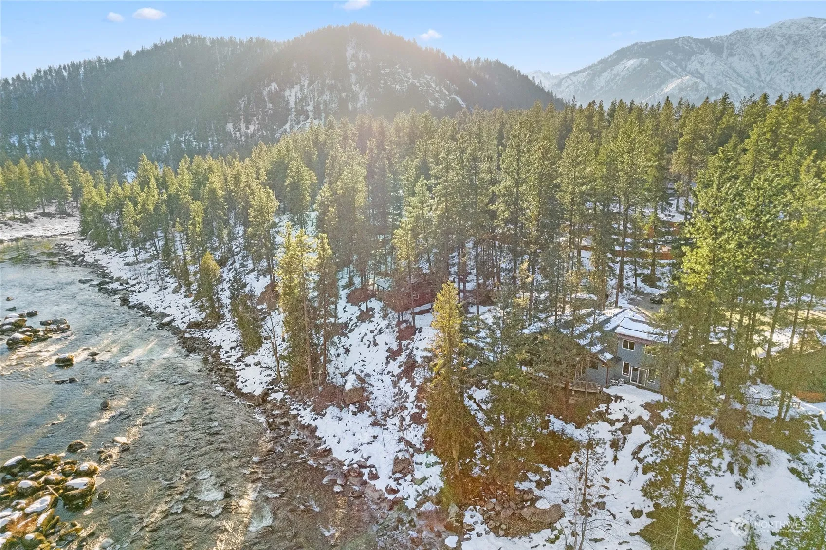 Nestled at the end of a quiet cul-de-sac on River Bend Drive, this 4-bedroom, 4-bathroom home offers privacy & natural beauty. Perched on a medium bank waterfront, the property offers panoramic river views. Designed for comfort & versatility, the home includes a Mother-in-Law suite, perfect for extended guests or rental income. The heart of the home is its living areas, featuring an inviting solarium that blends indoor & outdoor living, with natural light & views of the Wenatchee River. Whether you’re enjoying the inside views or outdoor deck & patio, this home provides a perfect sanctuary. Located at the end of the road, enjoy a sense of serenity & security, while being minutes from the charm & amenities of downtown Leavenworth.