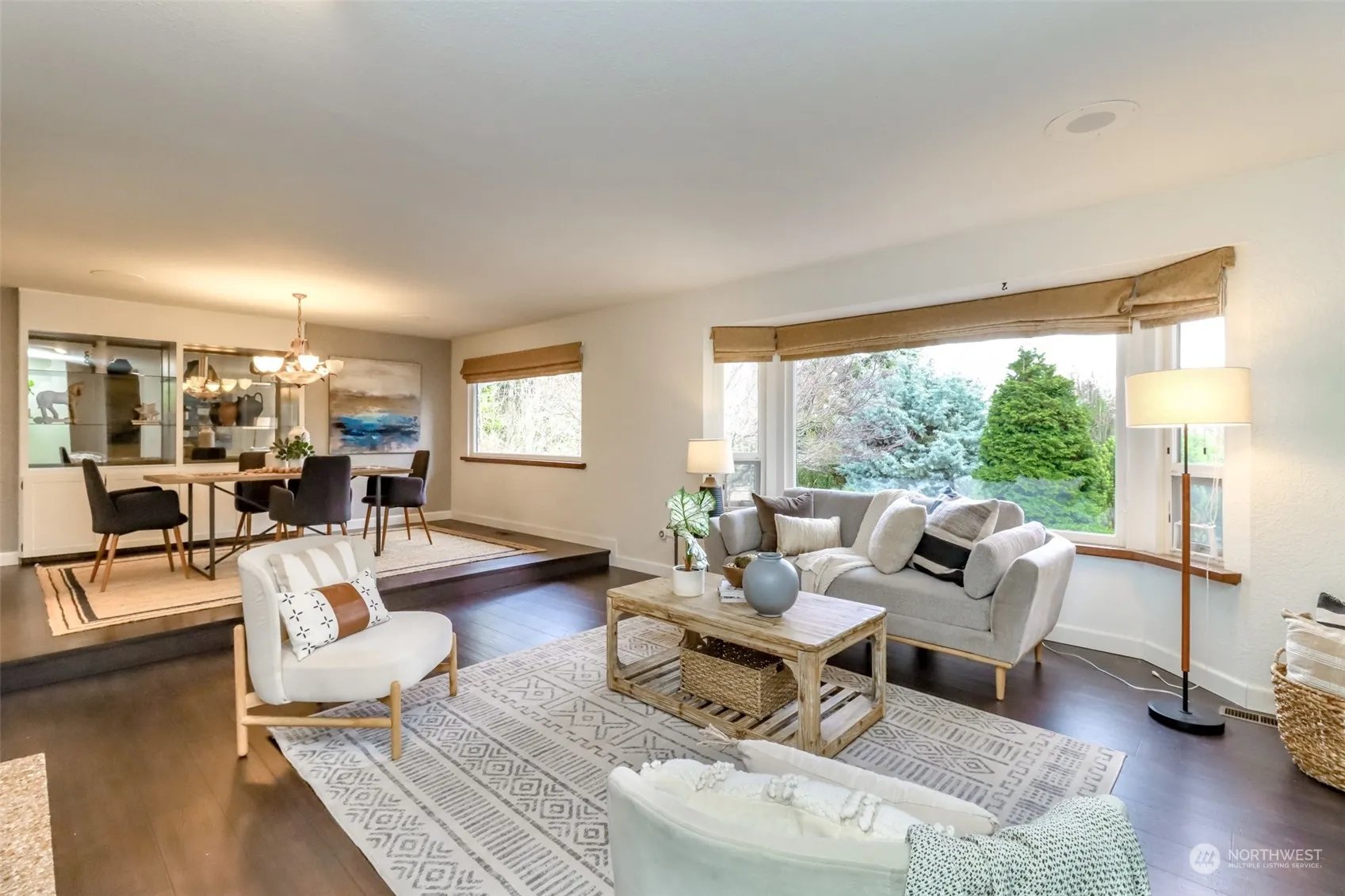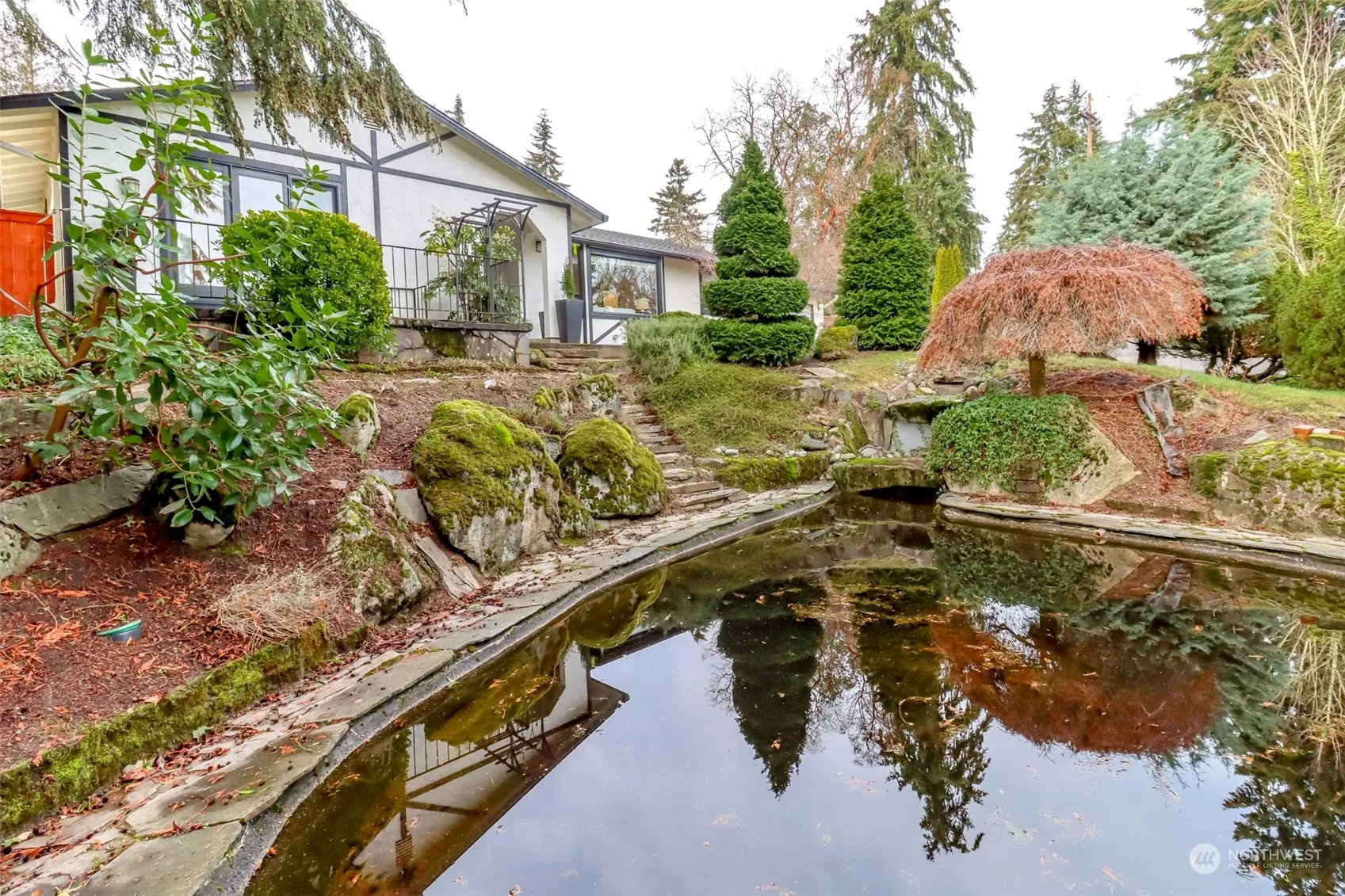 Discover timeless charm in this 2,510 sqft Spanish-style stucco home, nestled on a generous .41-acre lot in SeaTac. This 1978 rambler seamlessly blends classic & modern features, boasting 3 bdrms, 2.5 baths & dual fireplaces gracing an oversized formal living & dining room while adding warmth to a spacious updated kitchen. Sliding doors from the primary bdrm open to a serene stone patio overlooking a large cement koi pond. The expansive family/rec room offers a custom wet bar while the covered patio off the kitchen enhances outdoor living. Recent updates include new roof, heat pump, windows, carpet, quartz countertops, SS appliances & fresh interior/exterior paint. Just minutes from I-5, SeaTac airport, shopping, dining, light rail, & more.