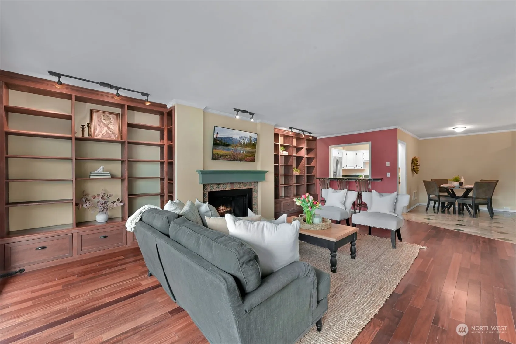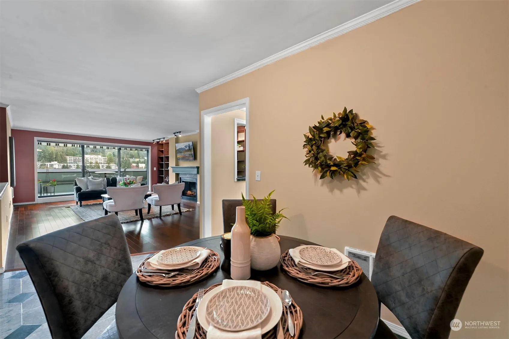 Pristine top floor custom condo with a bright and open layout. Urban living in a PRIME location and walking distance to the new light rail, grocery stores, parks, farmers market and restaurants. Private terrace to dine or entertain in the summer with stunning sunsets. Convenient drop down sun screen to stay cool on hot days. Custom book shelves and lighting around the wood burning fireplace for your personal touches, books or art. Spacious lower level offers primary bedroom with a new thermal pane door to your second private patio, additional bathroom and second bedroom. Well regulated complex with two parking spaces, elevator and secure entry. Unlike any other condo in this complex, this space boasts timeless custom touches and comfort.