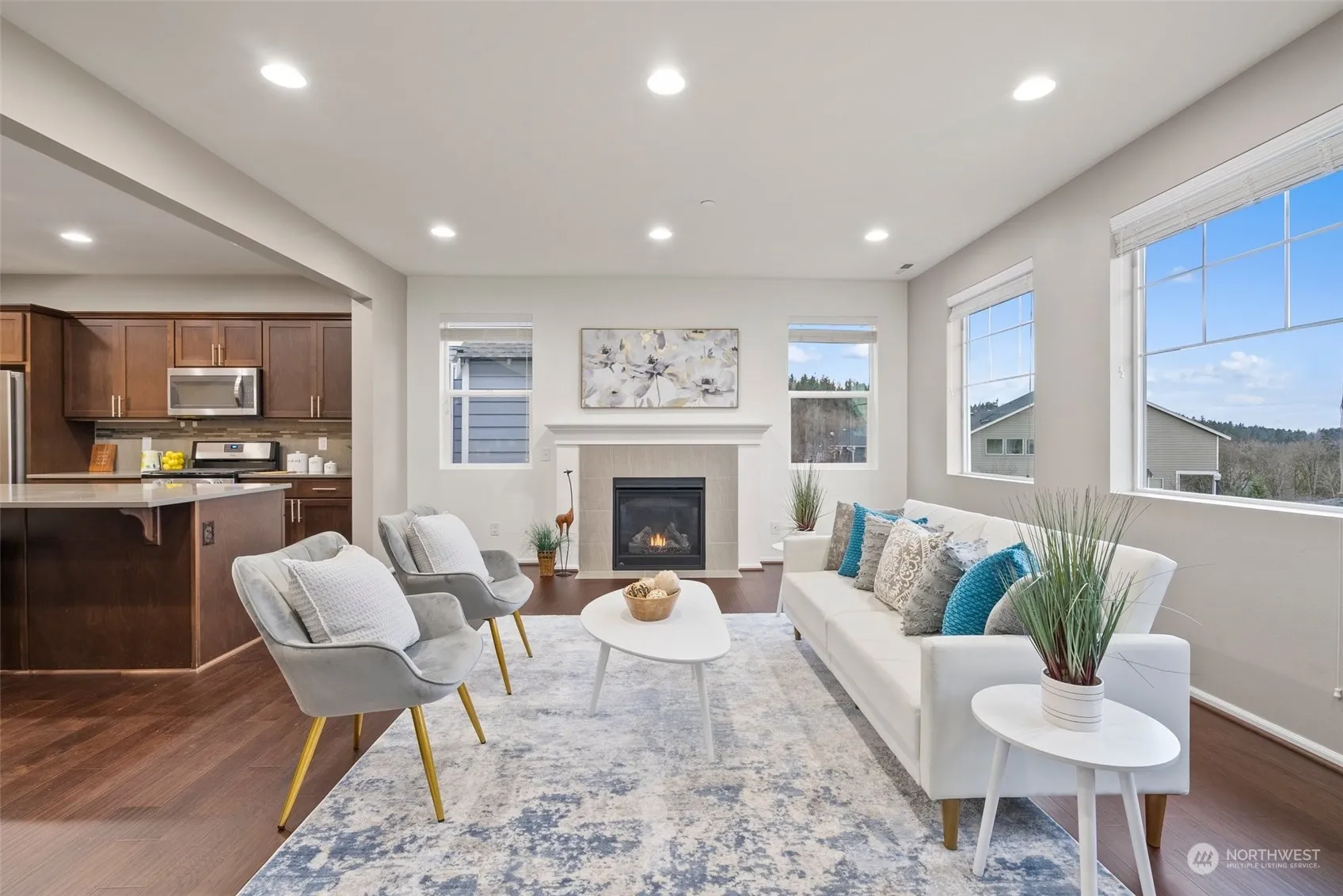 This stunning & modern home is perfectly situated at the end of a private street, offering unparalleled peace & serenity. With 4 spacious bedrooms, 3 baths & a loft area, there’s room for everyone to relax. Step into the expansive living room, where you’re greeted with breathtaking views of the Cascade Mountains—a daily reminder of nature’s beauty. Designed for both function & style, the chef’s kitchen is a showstopper. Making it ideal for hosting with a massive island & gas range. Relish additional East-facing Views from the grand primary suite. Features a separate laundry rm, storage closets, extra large 2-car garage & tankless H2O heater. Enjoy the benefits of a low-maintenance backyard that backs to a lush greenbelt. Close to Amenities!