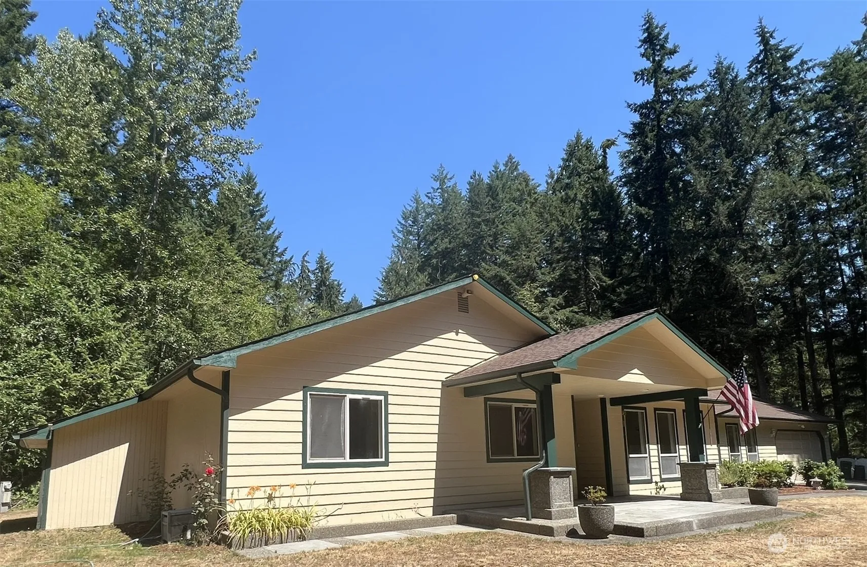 Spacious & Filled With Natural Light! Custom Built Rambler On 2.7 Level “Park-Like” Acres Just Outside Of Silverdale! 2944 SF’ w/ 3 Bedrooms, 3 Baths + Plus Home Office + Craft Room + Bonus Room w/ Full Bath (Mother In Law Suite / 2nd Mstr Suite??). New Luxury Plank Flooring Thru-Out, 9′ Ceilings, Windows Galore, Exposed Aggregate Walk Ways & Patios. Paved Circle Drive Way, 2 Car Attached Garage & Detached 360 SF’ Shop. This Property Even Has It’s Own Private Pond! See This Home Today …