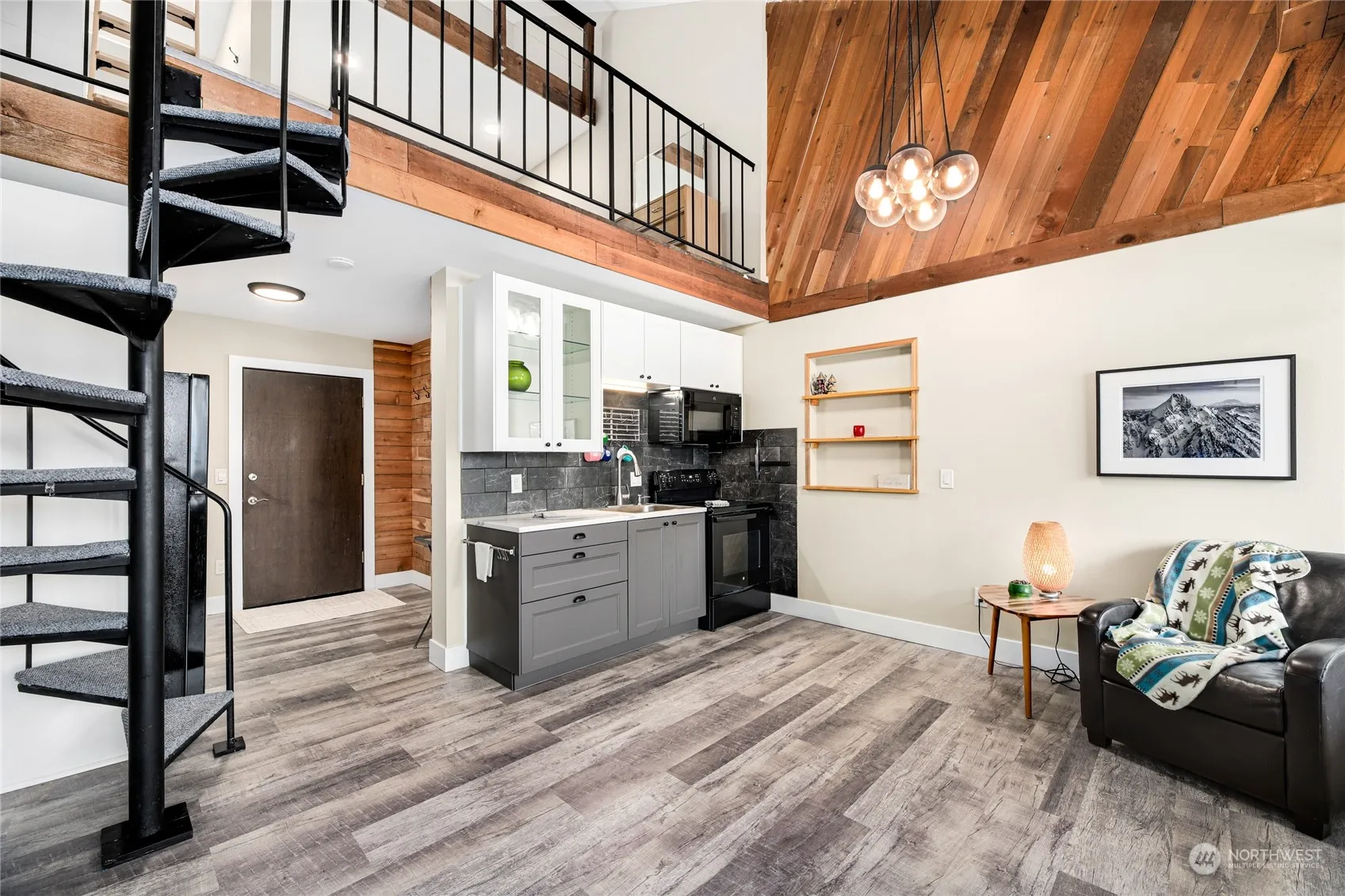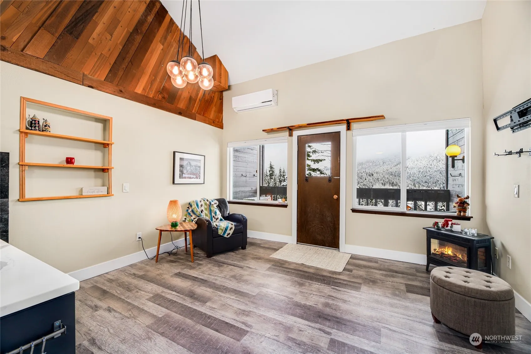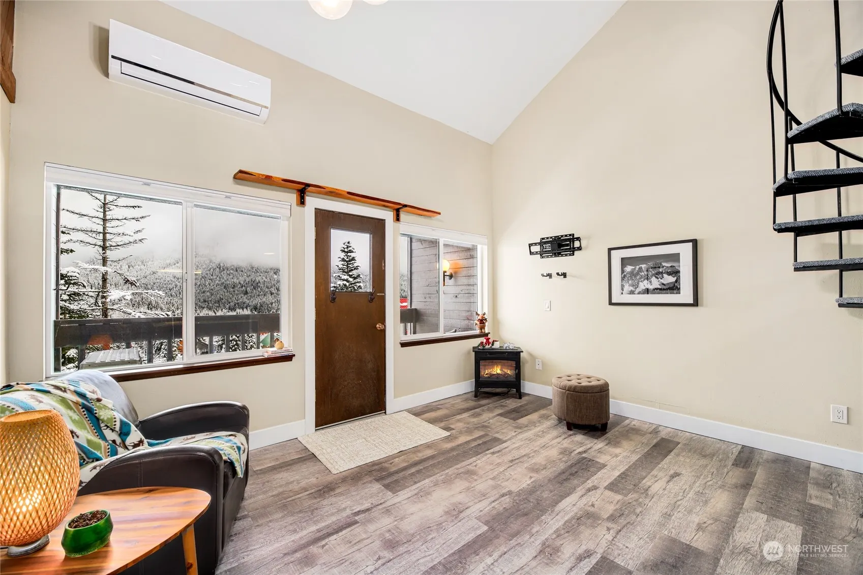 Ski in/Ski out, top floor condo in Hyak Estates. 500 sq/ft condo, plus bonus loft above the loft gives you additional storage or sleeping space. Views of Rampart Ridge from the living area/kitchen and private deck. Updated kitchen, bedroom, bathroom and living area. New countertops, cabinets, appliances, flooring, electrical, heat pump A/C, water heater, and paint. The work has been done for you, no need to search for contractors or materials. Tasteful finishes bring a feeling of comfort and warmth to your mountain getaway. Parking pass gets you a spot right at the front of the Hyak/Summit East upper lot. Ski to the chairlift, and back to the condo building. High speed internet for work meetings. Mtn Bike to the condo in Summer and Fall.