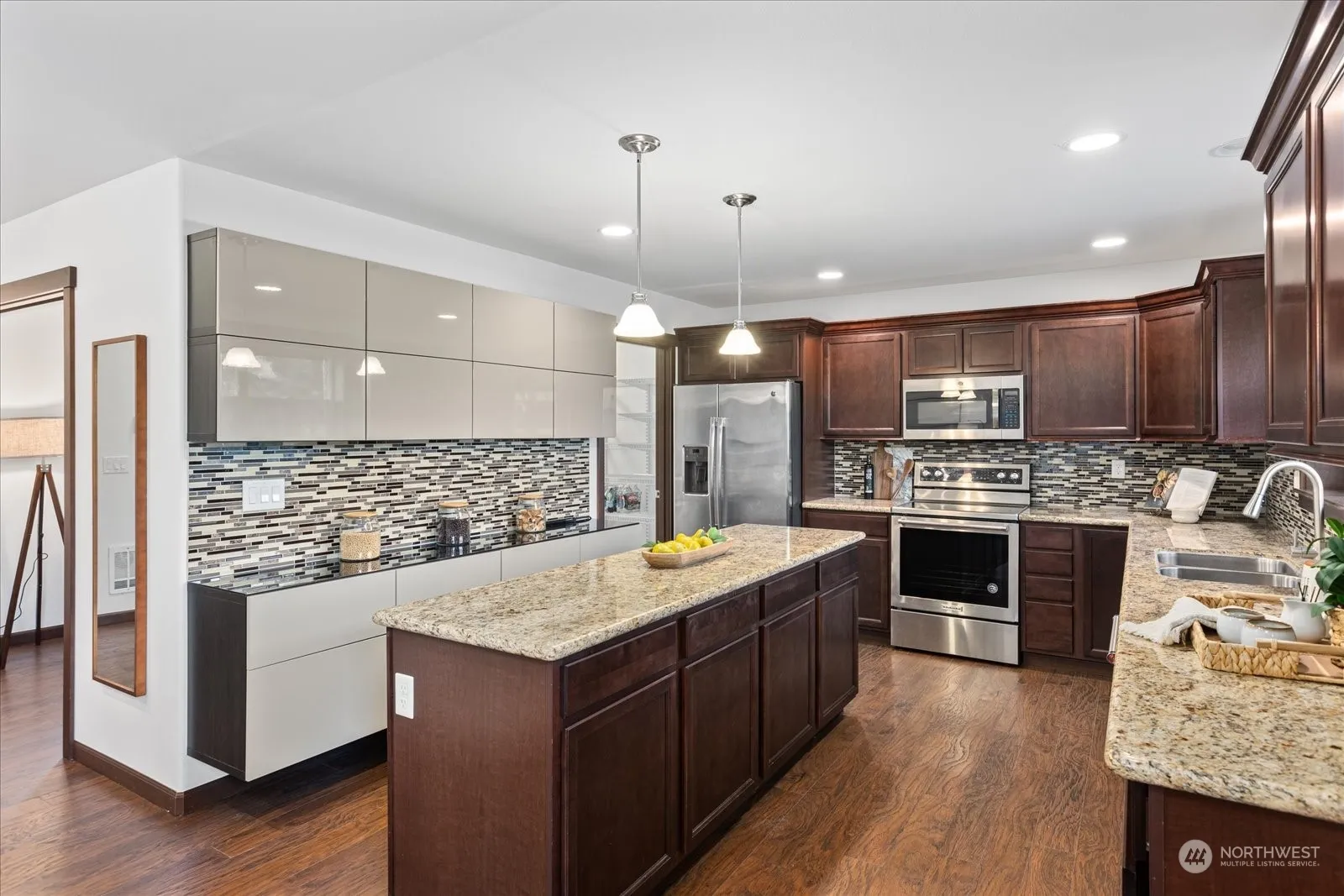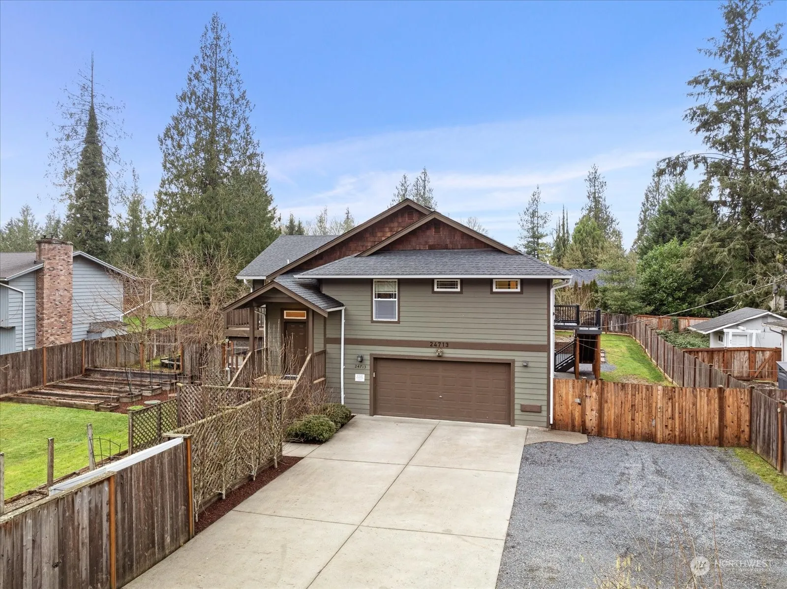 Custom Home in Desired Monroe Location! Spacious home offers a thoughtfully designed open floor plan w/3 bd, each w/walk-in closet & bath! Upstairs boasts a vaulted ceiling in the living room & a versatile den/office. The generously sized kitchen is a chef’s dream, complete w/a large island topped w/granite counters, pull-out shelving & corner storage for optimal organization. The primary suite features vaulted ceilings, a luxurious soaking tub & private access to a large sun room, perfect for relaxing or entertaining. Downstairs; Oversized rec room, additional bd, full bath & a potential for a second kitchen! Gardner dream in fully fenced back yard; raised vegetable beds, fruit trees & gazebo. Oversized 2 car garage! Welcome Home!