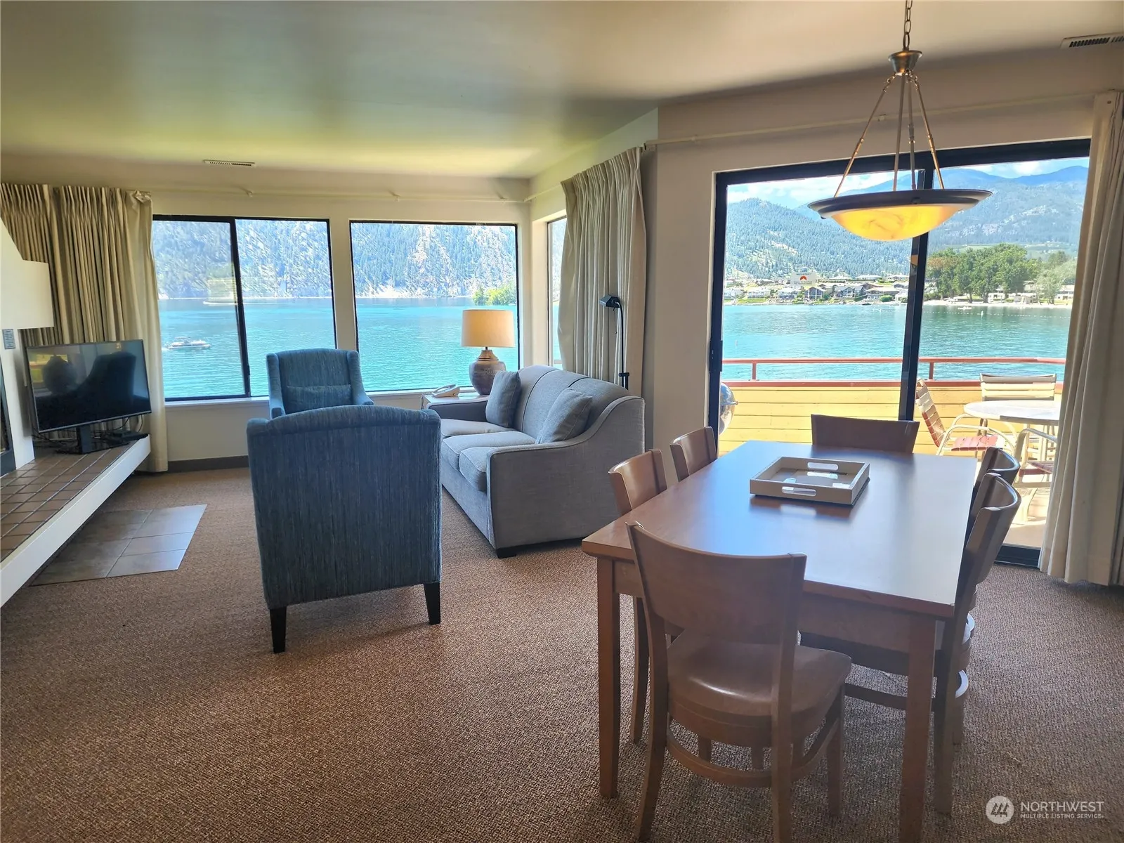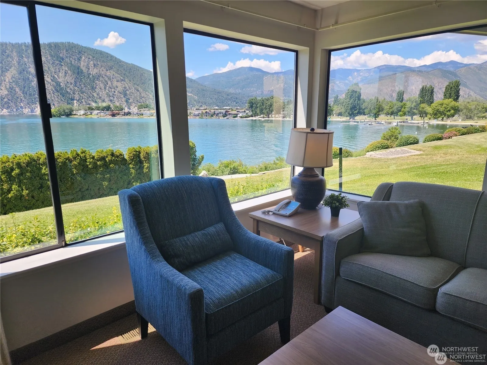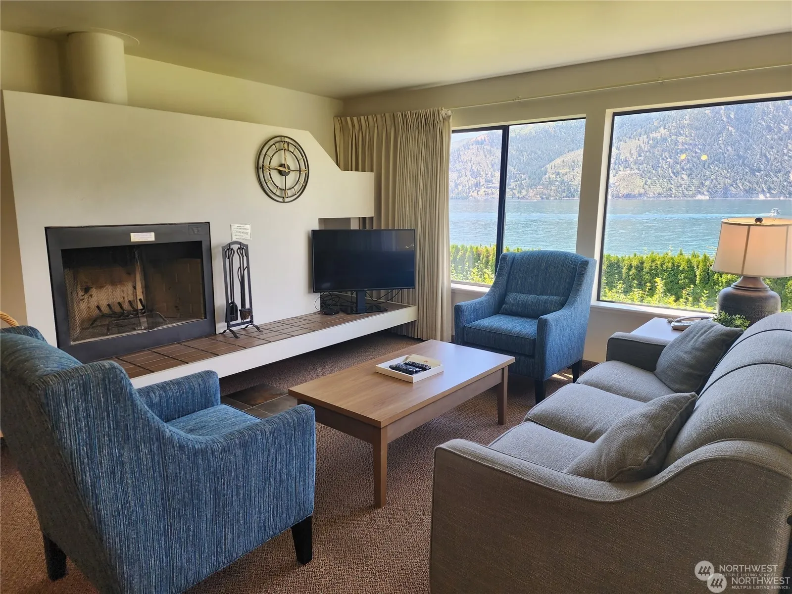 Upper Floor CORNER 2 bed 2 bath single level luxury suite with sweeping lake & mountain views from your private deck & most every room inside. BUY NOW & use August 22-29 & November 28-Dec 5 in 2025. Feb 20-27, May 15-22, August 7-14 & Nov 13-20 in 2026. Feb, May, July & Oct weeks in 2027. Enjoy 4 rotating weeks every year. HOA fees $977 per quarter makes this the most affordable way to experience all seasons the Lake Chelan Valley has to offer. Use your weeks, rent for income or trade & visit other places. Purchase includes use of all resort amenities: boat docks, slips, buoys, sandy beaches, indoor/outdoor pools, on-site watercraft rentals, tennis/pickle ball courts & more! Close to downtown Manson amenities.