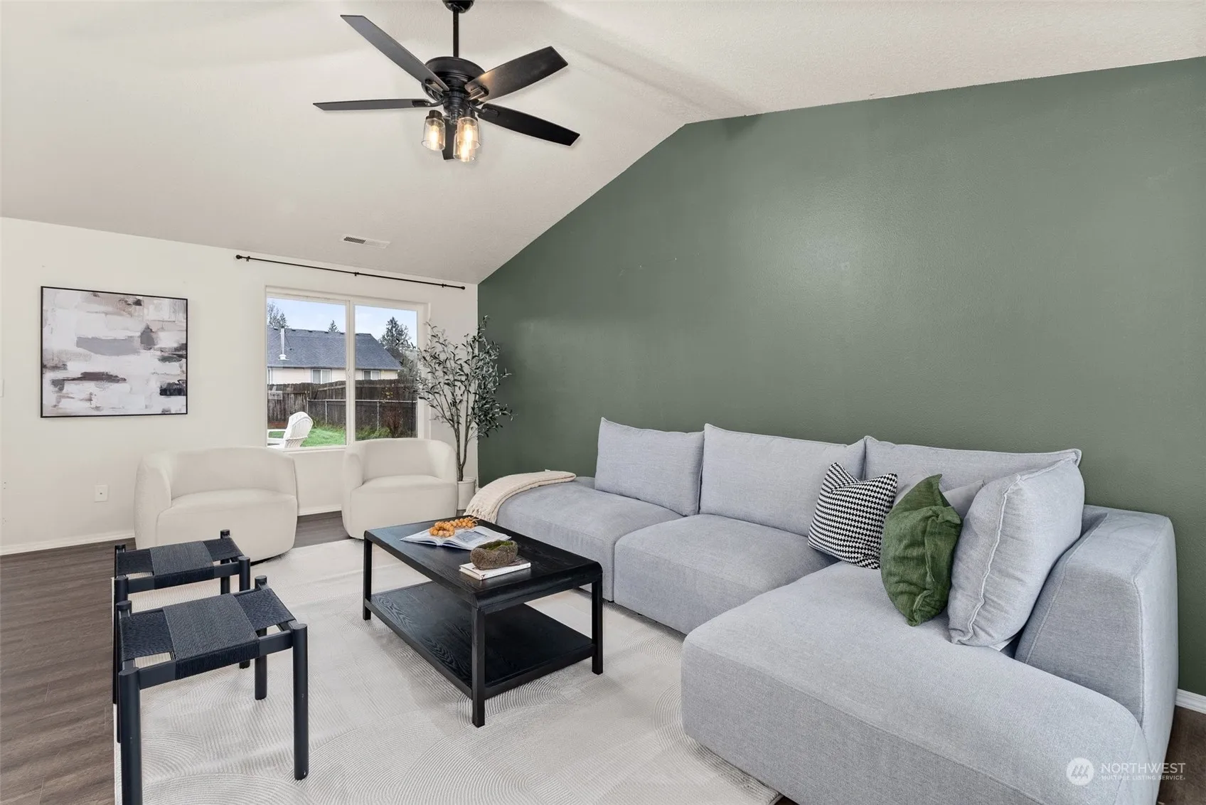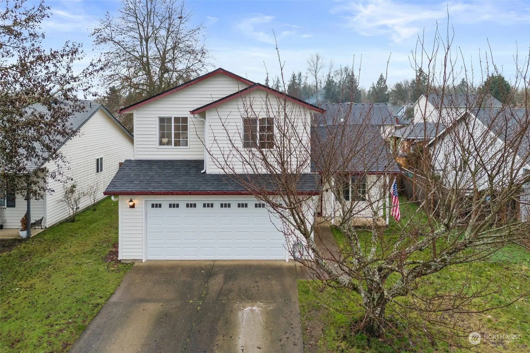 Welcome to this updated two-story gem on a quiet, dead-end street! This 4-bed home boasts updates throughout, including new light fixtures, laminate flooring, & 2022 roof. The vaulted ceilings in the living room create an airy space, complemented by a relatively open-concept layout. The kitchen features stainless-steel appliances, subway tile backsplash, & pantry! The primary suite offers an en-suite bathroom & large closet, while 3 additional rooms create space for everyone. Enjoy year-round comfort with ceiling fans & AC w/ smart thermostat. Outside, the fenced yard is perfect for entertaining & relaxing with a large deck, hangout area & garden shed. Conveniently located between I-205 & I-5, this home offers easy commuting w/ no HOA.