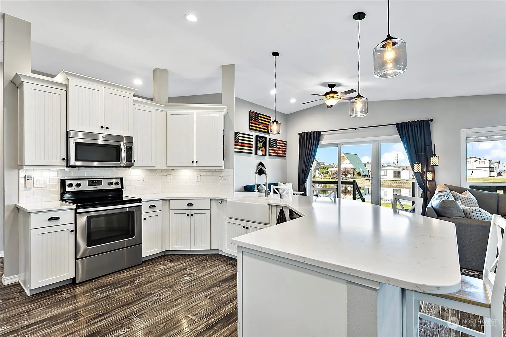Nestled on the shores of Agate Lake, this modern finished beach house boasts a unique charm. This open floor plan, single-level home showcases a covered deck overlooking the lake, perfect for hosting BBQs or enjoying a relaxing evening as the sun sets. The kitchen features stainless steel appliances, a wine refrigerator, large pantry and quartz countertops. With 3 beds, 2 bath, and 1567 sq ft of living space, this property is well-suited as a full-time residence or a weekend getaway. Relax in the master suite with lake views, a large tub and a tile shower. Residents can take advantage of Sandy Point’s amenities, including a marina, golf course, pool, club house and tennis courts.