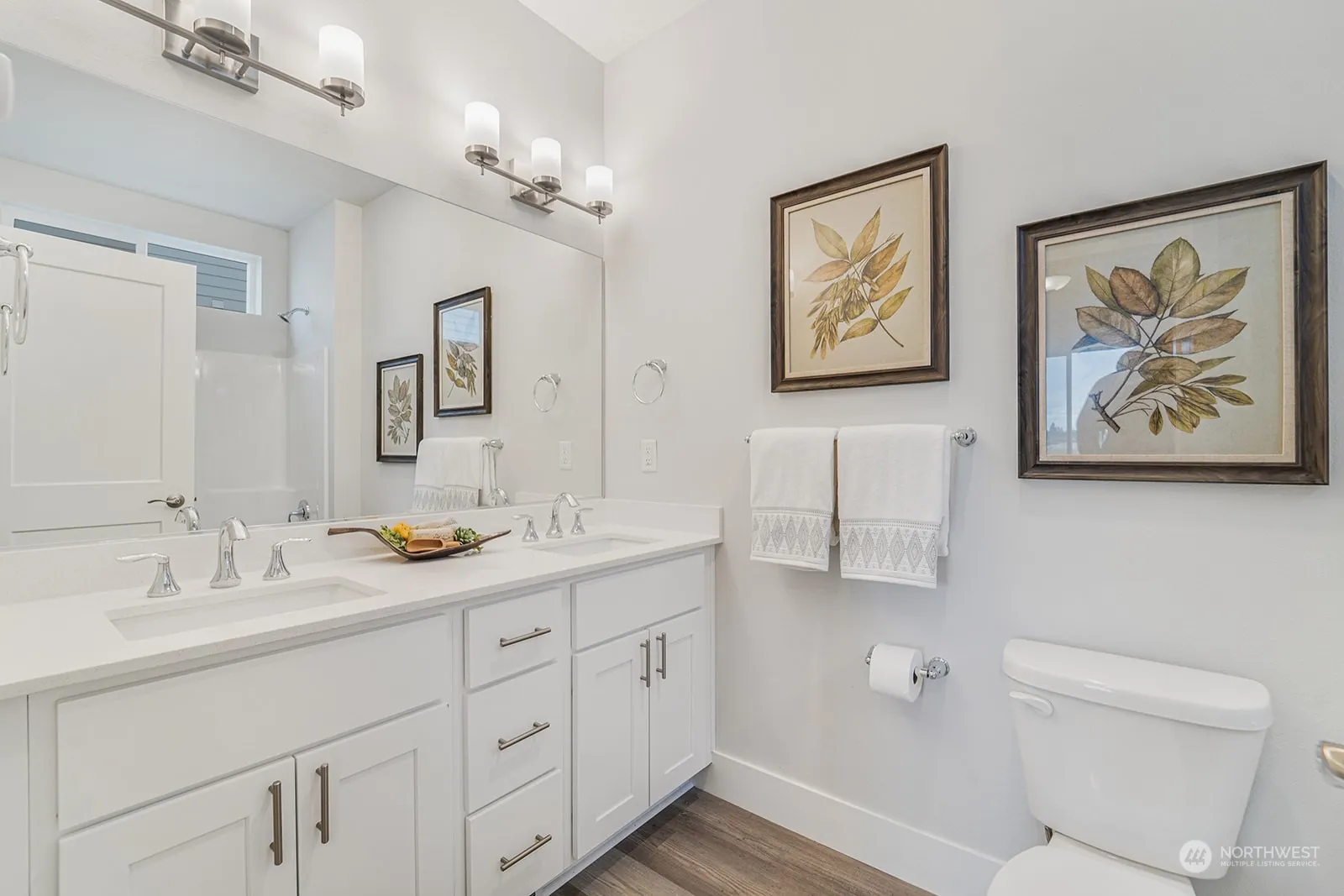 *MOVE IN READY!* Discover the Morrison by Azure Northwest Homes, where contemporary design meets practical living. This 3-bedroom, 2-bathroom home features a covered back patio, ideal for morning coffee. The great room’s lofty ceilings create an airy atmosphere, with natural light pouring through ample windows and a large double slider. The kitchen shines with exquisite countertops, an island, shaker cabinets, stainless steel appliances, and a pantry. A dedicated dinning nook enhances entertaining. Outside, a professionally landscaped front yard highlights the home’s unique exterior. With a 3-car garage, the Morrison offers ample storage, blending style and functionality perfectly.