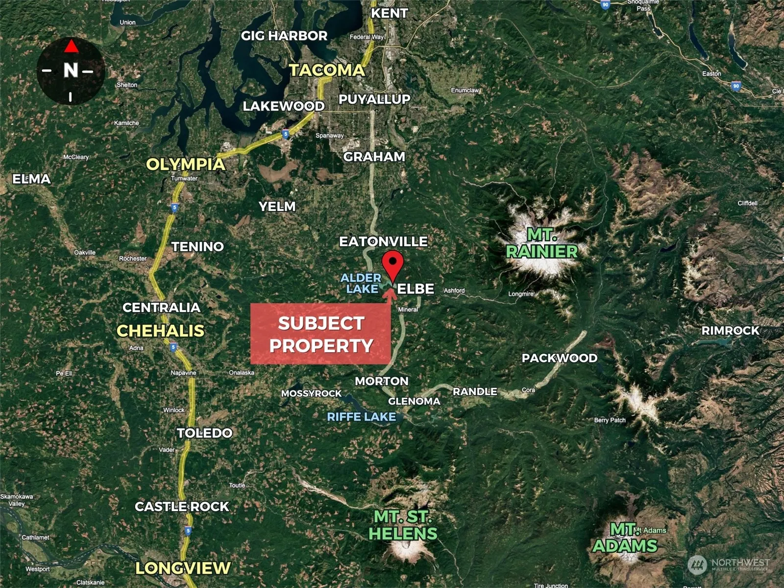 Once-in-a-lifetime opportunity to own 33 acres overlooking Alder Lake. Zoning allows for large lot subdivision to create 3 new parcels with excellent views of the lake. The land is mostly treed but there’s also a small pasture area. The timber consists mainly of fir with intermixed hardwoods like alder. Harvest now to defray your development costs or wait a few years to maximize your return. Lots of wildlife – elk, deer, bear, cougar, bobcat. Road system in place that traverses the property from north to south w/ two access points. Electric on-site. Level topography along road that gradually inclines going into the forest. Beautiful countryside location to establish your estate or plat into 3 luxury building lots. No HOA or CC&R’s.