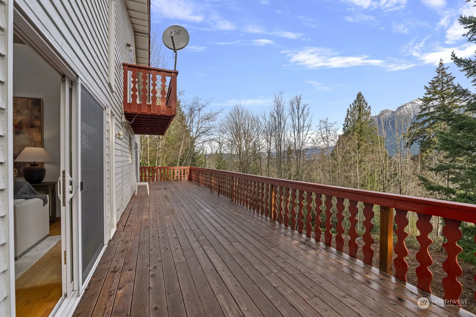 Custom Harmon Heights view home! Enjoy captivating, ever-changing views of Mount Si. Offered for the first time. Sited on a shy acre off a dead end road. Soaring ceilings greet you. Open floor plan. A wall of windows to bring in the view. Flexible floor plan with the primary suite upstairs and second primary + bath on the main level. Entertain or relax & recharge on the view deck & patio. Spacious daylight walk-out basement. Newly refreshed carpet and paint. The yard offers space for gardening and play. Feels a world away yet only minutes to North Bend shopping, dining, trails, schools, outdoor recreation, & more. No HOA. Quick access to I-90 makes commuting a breeze. Prized Snoqualmie Valley schools. A special opportunity. This is the one!