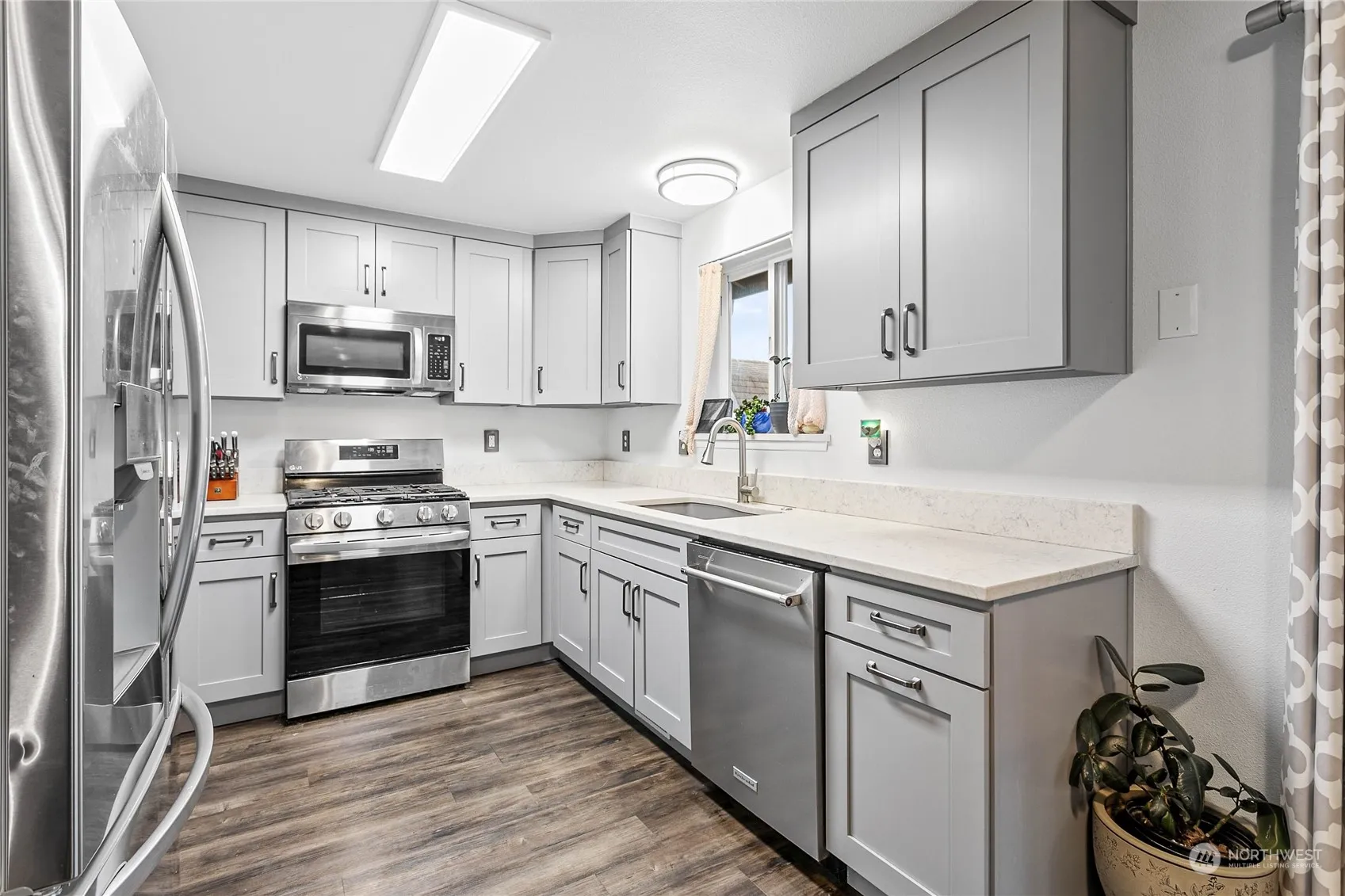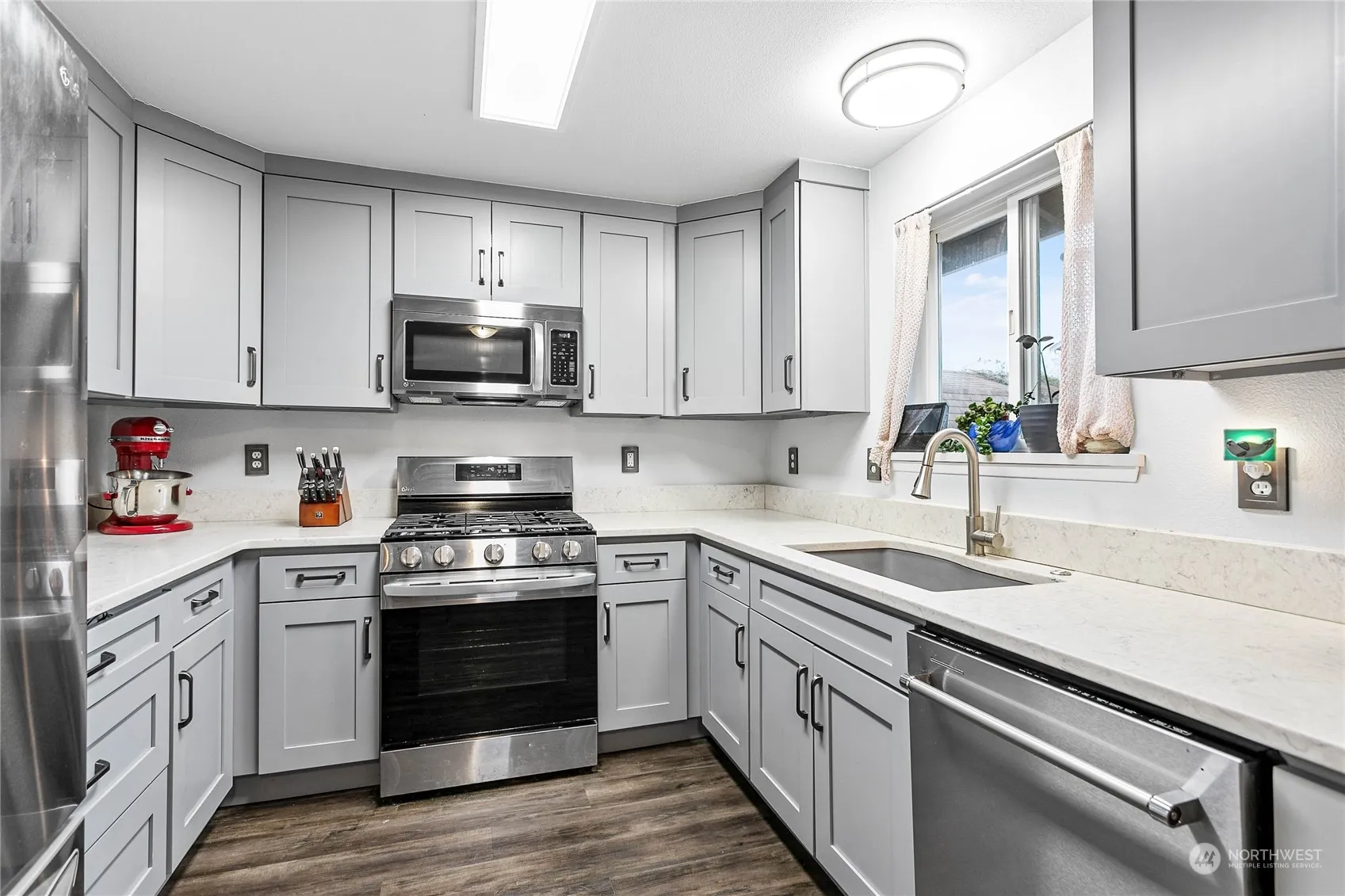 Exceptional remodel complete! Large spacious kitchen has room for two chefs and sparkles with new quartz counters, composite sink, brand new top quality designer cabinets, new stainless appliances – his kitchen is right out of a model home magazine! Sit back and enjoy many years of care free living. In addition to the new kitchen, brand new furnace in 2022, new mini split 2023, new luxury vinyl flooring, new tiled bathrooms and the most plush carpet you’ve ever set foot on in all bedrooms! Walk to the great schools and parks nearby, stretch out in the sunny and spacious fenced backyard or plant that organic garden you’ve always dreamed of – full sunshine all day makes this a gardeners delight + nice 2 car garage and just minutes to I-5!