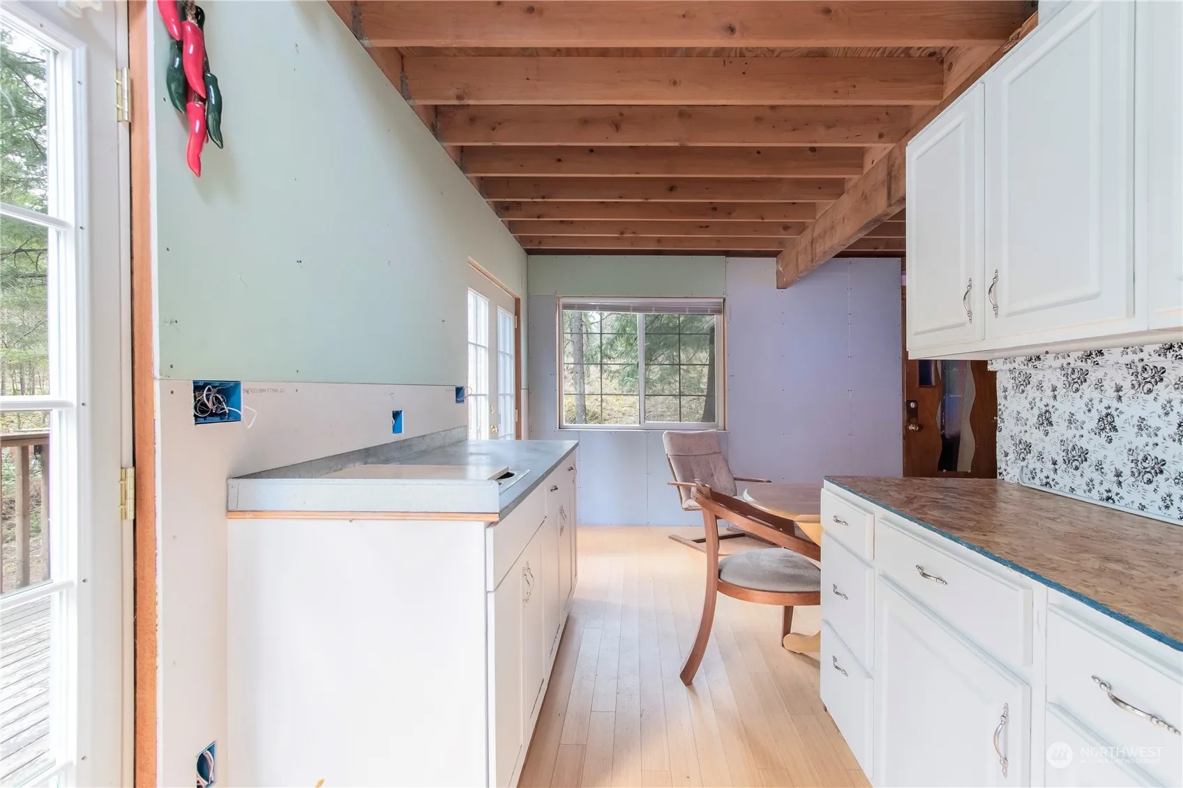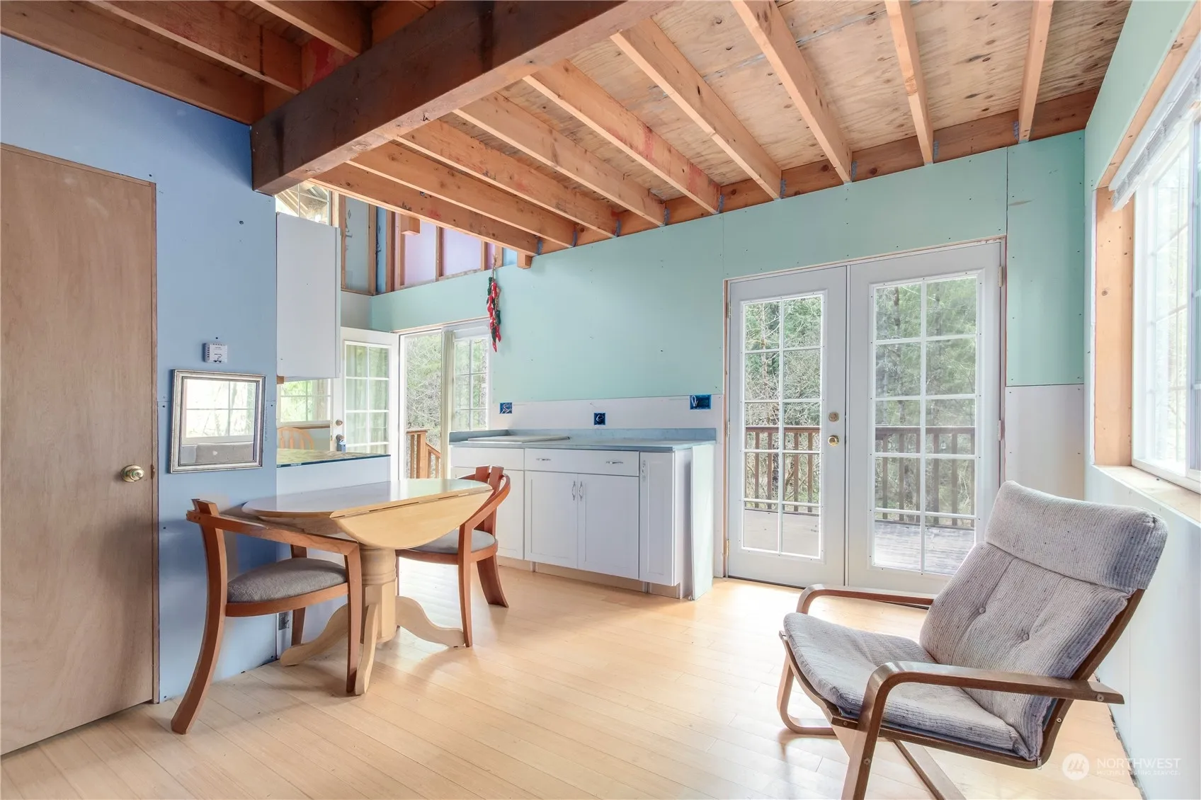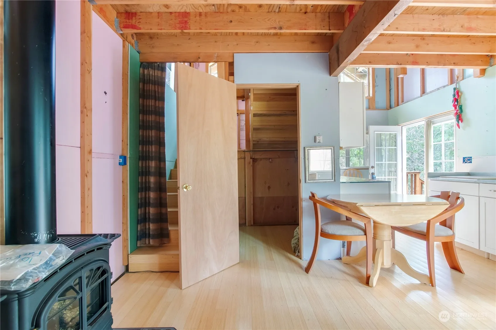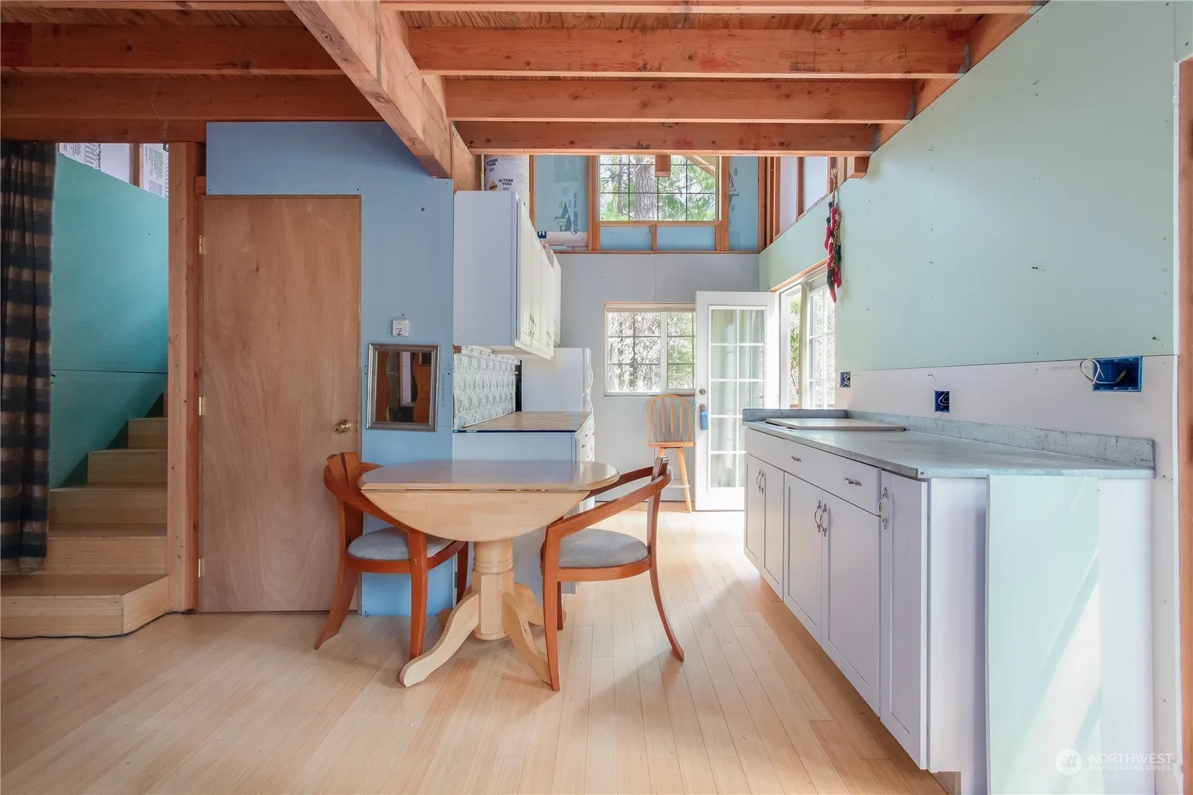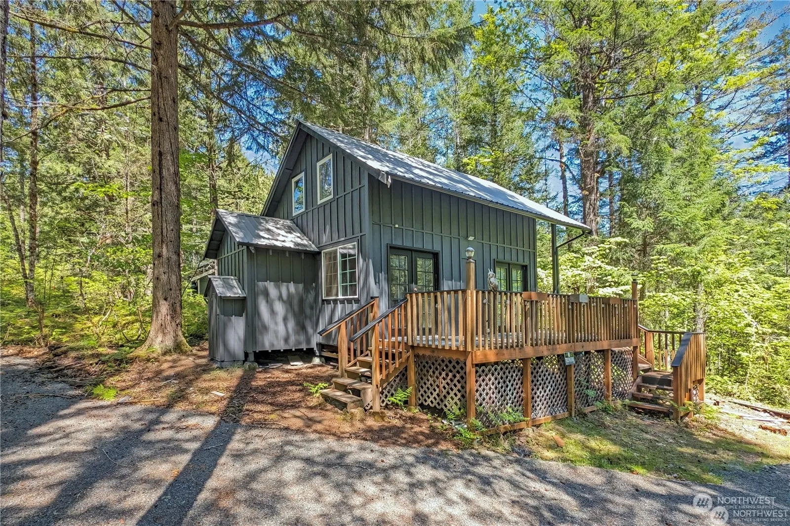 This mountain cabin on .54 acres is the perfect opportunity to create your dream getaway in the heart of the forest. With a classic Northwest cabin vibe, it features board & batten siding, an open loft space, metal roof, galley kitchen, bamboo floors, propane fireplace, & French doors. Surrounded by towering trees and located on a forested road, this property is just moments away from the beauty of Mt Rainier National Park, White Pass Ski Area, and only steps from Skate Creek Park and its trails. The cabin offers endless potential for customization. Cabin is not yet finished or attached to utilities. Individual well is drilled and power and meter are on site. Finish, build instant equity, and make this your perfect Packwood retreat!