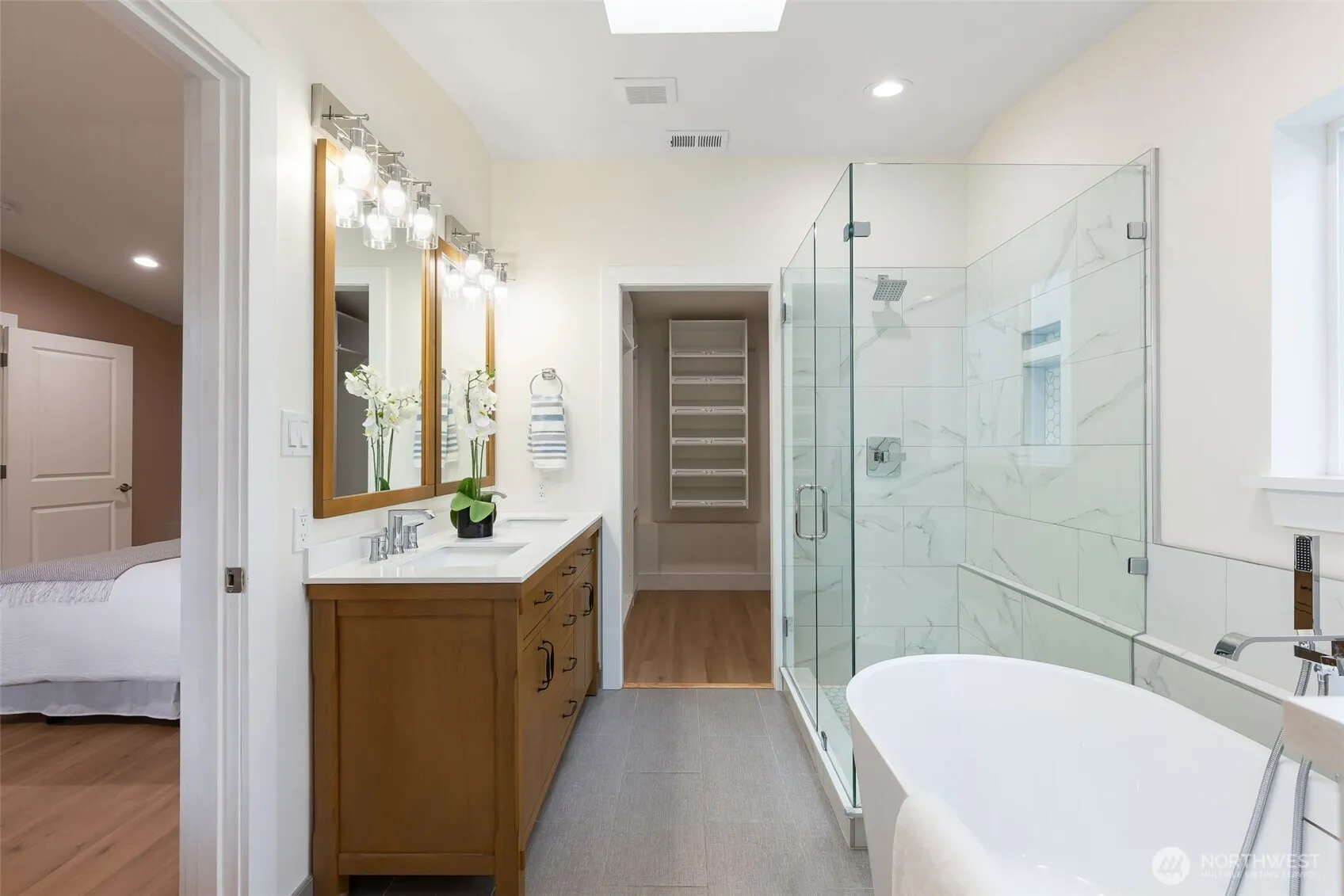 Imagine…unwinding in your newly added 475 sqft primary suite—completed in 2023 as the perfect private retreat, with vaulted ceilings, a five-piece bath, and a walk-in closet. The open layout between the kitchen and living room makes hosting easy, and the large backyard offers ideal summer shade. Guests always admire the expansive, usable lot and 500 sqft paver patio. With updates like LVP flooring throughout, an upgraded electrical panel, and a carport wired for EV charging, this home blends comfort and convenience. Quick access to I-5 and transit—without the noise—is the cherry on top. Can you imagine living here?