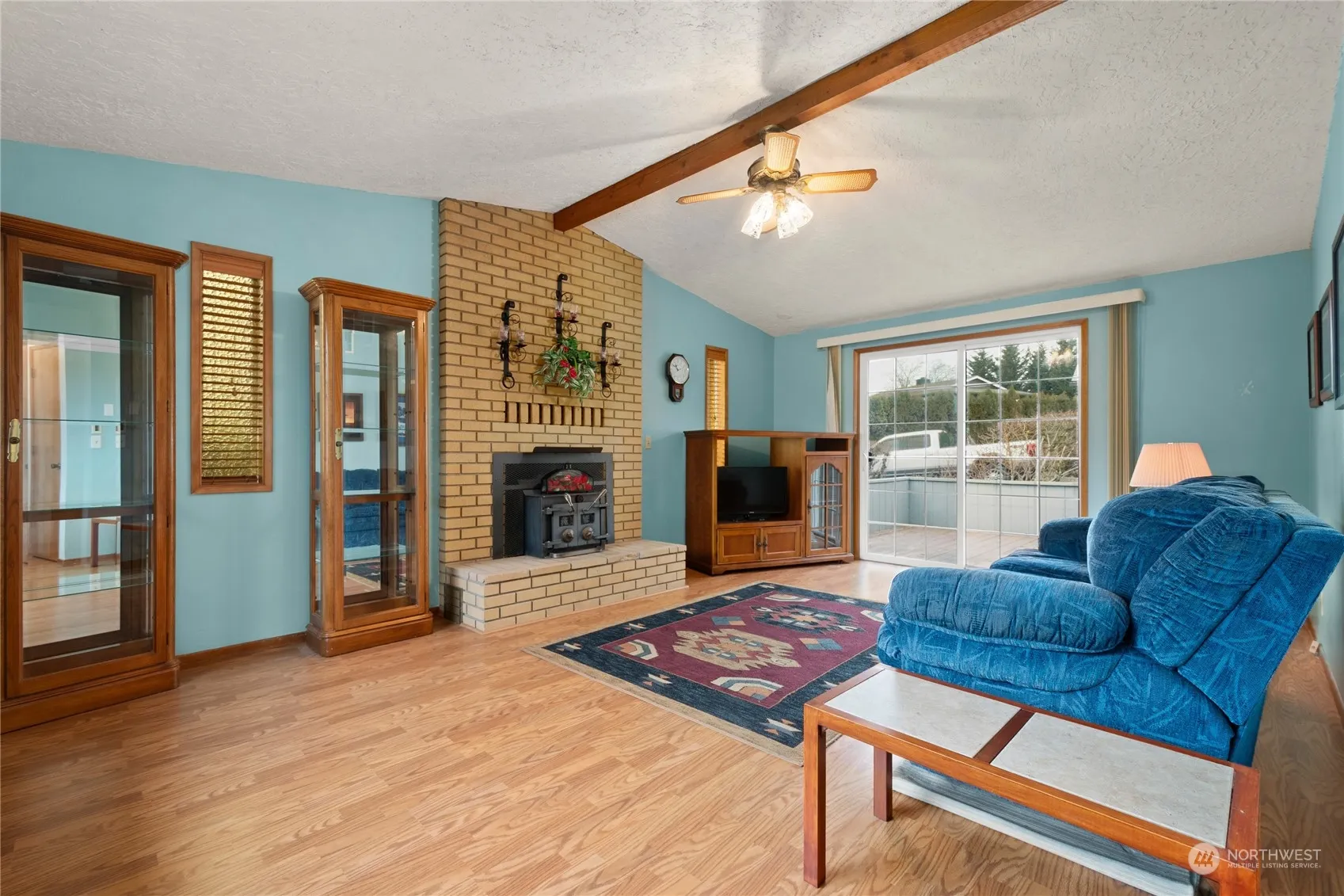 Charming, Affordable One-Level Home Near Schools & Shopping! Beautifully maintained 3 bedroom, 2 bath home. Step inside to discover laminate flooring throughout and a vaulted living room featuring a cozy wood stove insert & sliding glass door that opens to a private deck. The modern kitchen is a chef’s dream with a cook island, solid surface countertops, and abundant built-in pantry storage. Relax & unwind in the main bathroom’s jacuzzi tub. This home has been thoughtfully updated over the years, including a new furnace & heat pump, vinyl siding, a fresh driveway, and a LeafGuard gutter system. Outside, the fully fenced backyard is your personal oasis, offering a covered deck, raised garden beds, and meticulously landscaped surroundings.