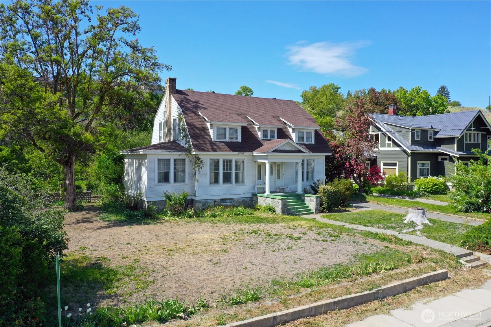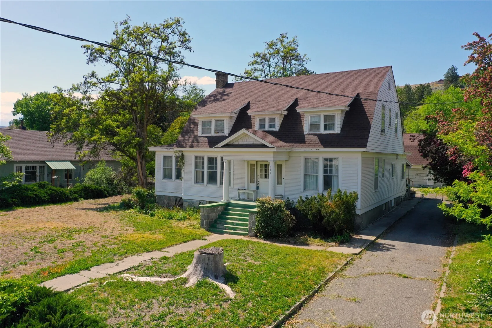 Nestled in the picturesque town of Okanogan, this historic 5-bedroom, 2-bathroom home is a captivating example of vintage craftsmanship, featuring tall ceilings and generous rooms that evoke timeless elegance and a welcoming atmosphere. Upon entering, you’re greeted by a grand staircase, a spacious living room and a large fireplace adding warmth and character to the space. Off the living room, a cozy library awaits. Set on nearly three-quarters of an acre, the property provides an expansive outdoor canvas for gardening, outdoor entertaining, or whatever your vision may hold. At the end of the driveway is a detached 2-car garage. This enchanting 1920 home is ready to be your next creative project or dream home!