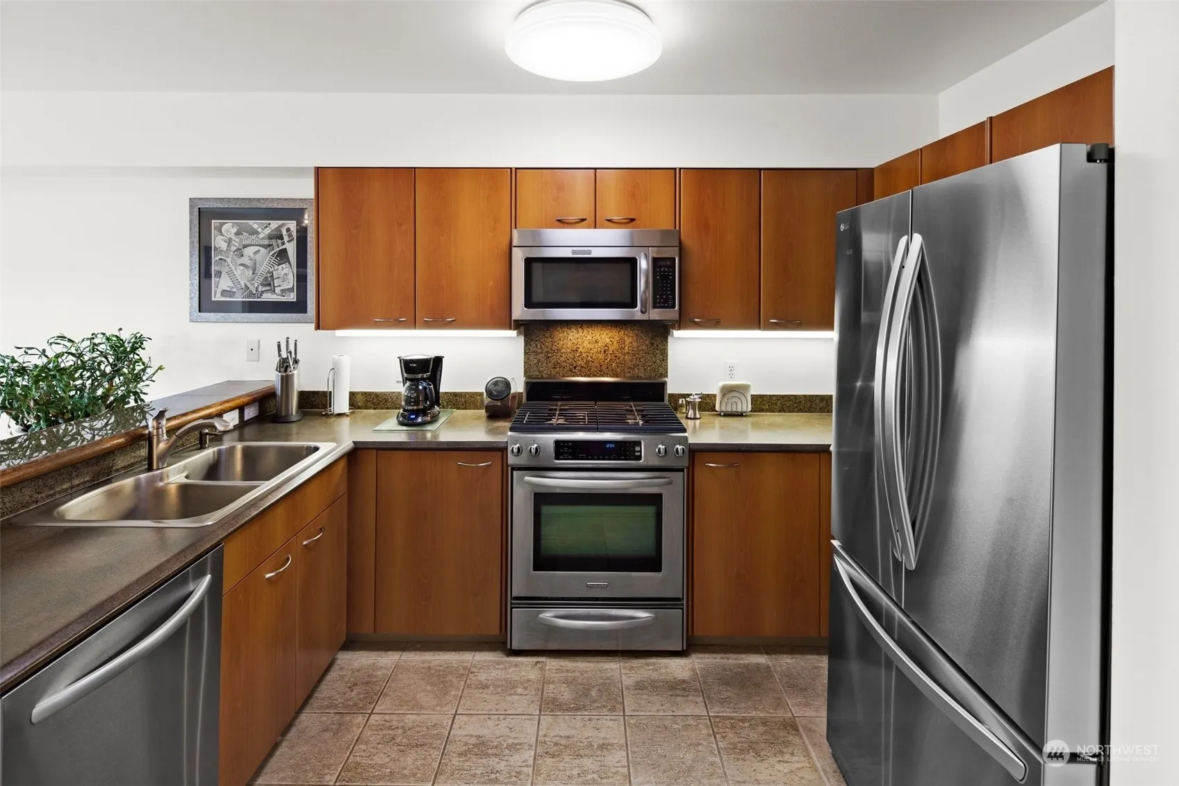 Bright, spacious urban retreat near the Marina! Step into a home filled with natural light & modern charm. This unit offers an open floorplan, 1 bedroom plus den, 3/4 bath & private balcony. The kitchen shines with cherry cabinets, granite tile counters & gas range. Radiant gas-heated floors & cozy gas fireplace create a warm, inviting space. Walk-in closet, remote-controlled window coverings & 2 parking spots add style & convenience. Located in a secure building with lobby, elevator, gated parking & extra storage, this gem is moments from the Marina, parks, restaurants & shopping. Enjoy the vibrant neighborhood & everything it has to offer. Your dream home awaits—schedule a tour today!