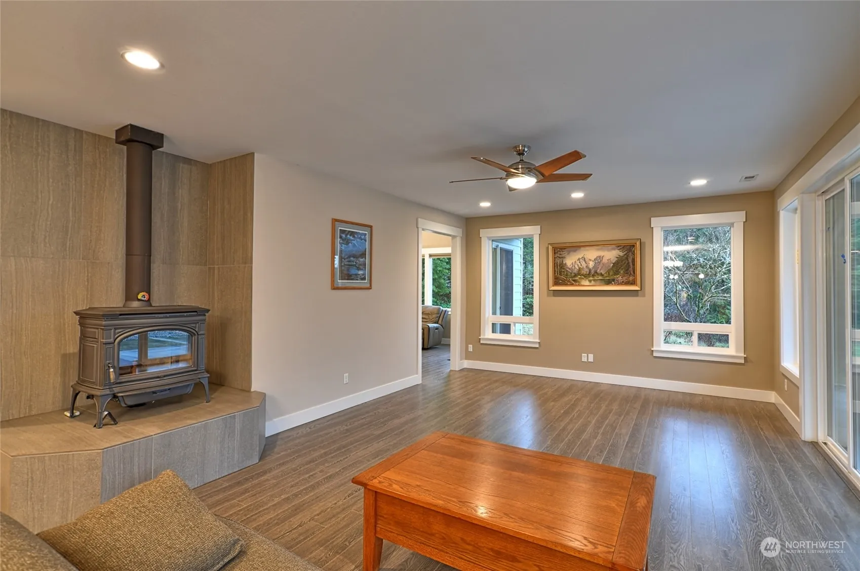 Gorgeous custom rambler in the perfect Northwest setting. Perched high on a lovely 7+ acre lot with a ring of tall evergreens to provide total privacy & sunny southern exposure. Great room concept w/ soaring ceilings, loads of windows, open and spacious rooms, & high level finishes. Kitchen is a chef’s delight w/ huge quartz center island, separate prep sink, big walk-in pantry, upscale appliances, all open to dining area & the great room. Dream primary suite w/ 2 very large walk-in closets, bath with jetted tub & tile enclosed shower, double vanities. Over 1,700 sq ft covered parking incl RV carport, fabulous covered patio. Gated comm, gated private drive, pristine condition. Look in Virtual Tour section for floorplan w/ pictures attached!