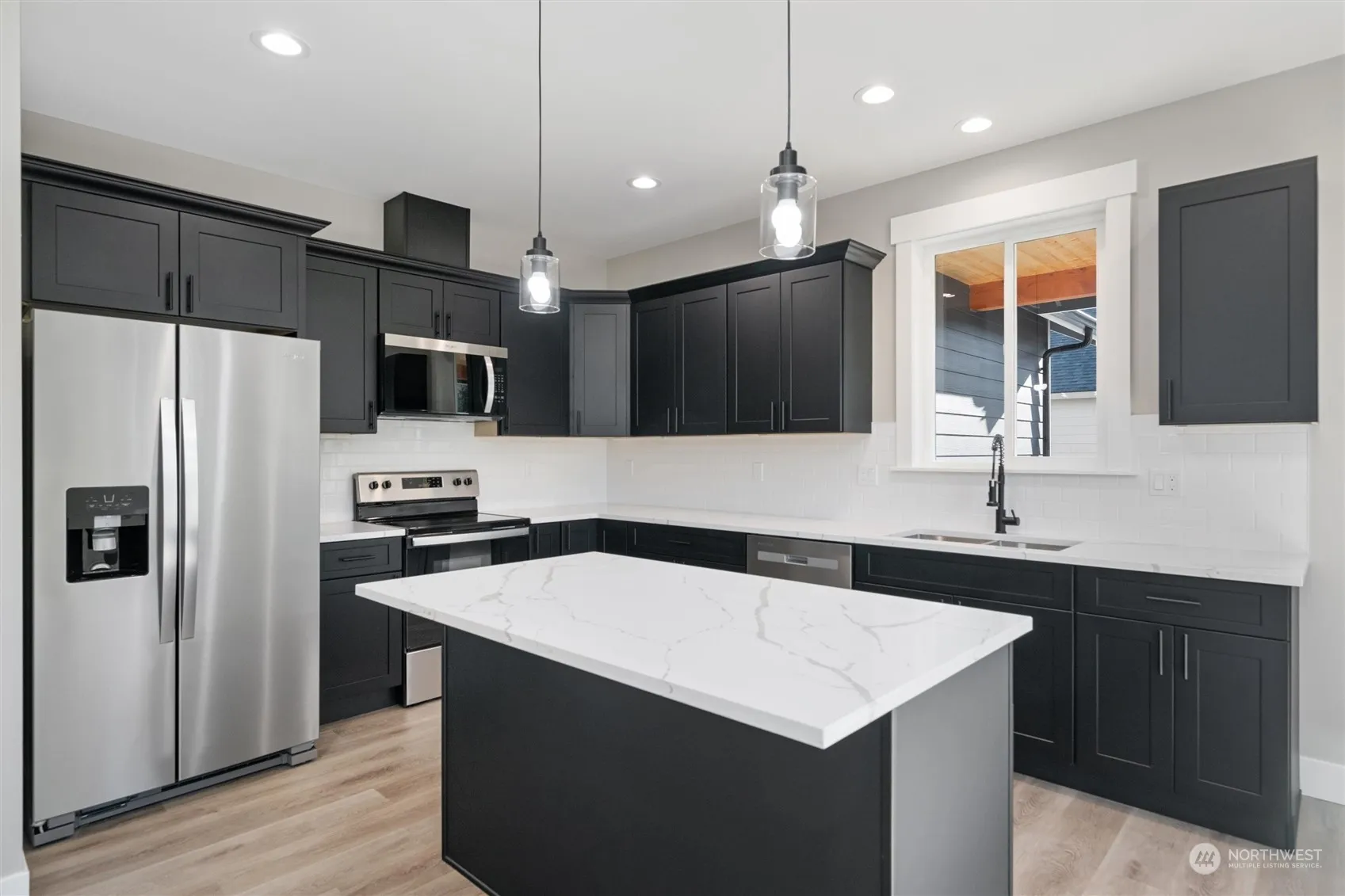 BRAND NEW 3 bedroom, 2 bathroom home with beautiful covered back patio. Features include stainless appliances, nine foot ceilings, quartz counter tops, tile back-splash, heat pump so you get central air conditioning (not mini splits). Stunning spacious kitchen with island, soft close cabinets and dovetailed soft close drawers. Sought-after 3 car garage has room for all your vehicles, toys & storage. Garage is wired to plug in your electric vehicle and home is also wired for generator! Enjoy tranquil living in a brand new gated development with stunning mountain views! Compare our quality homes to other new homes on the market. Only about a 30 minute drive from Bellingham.