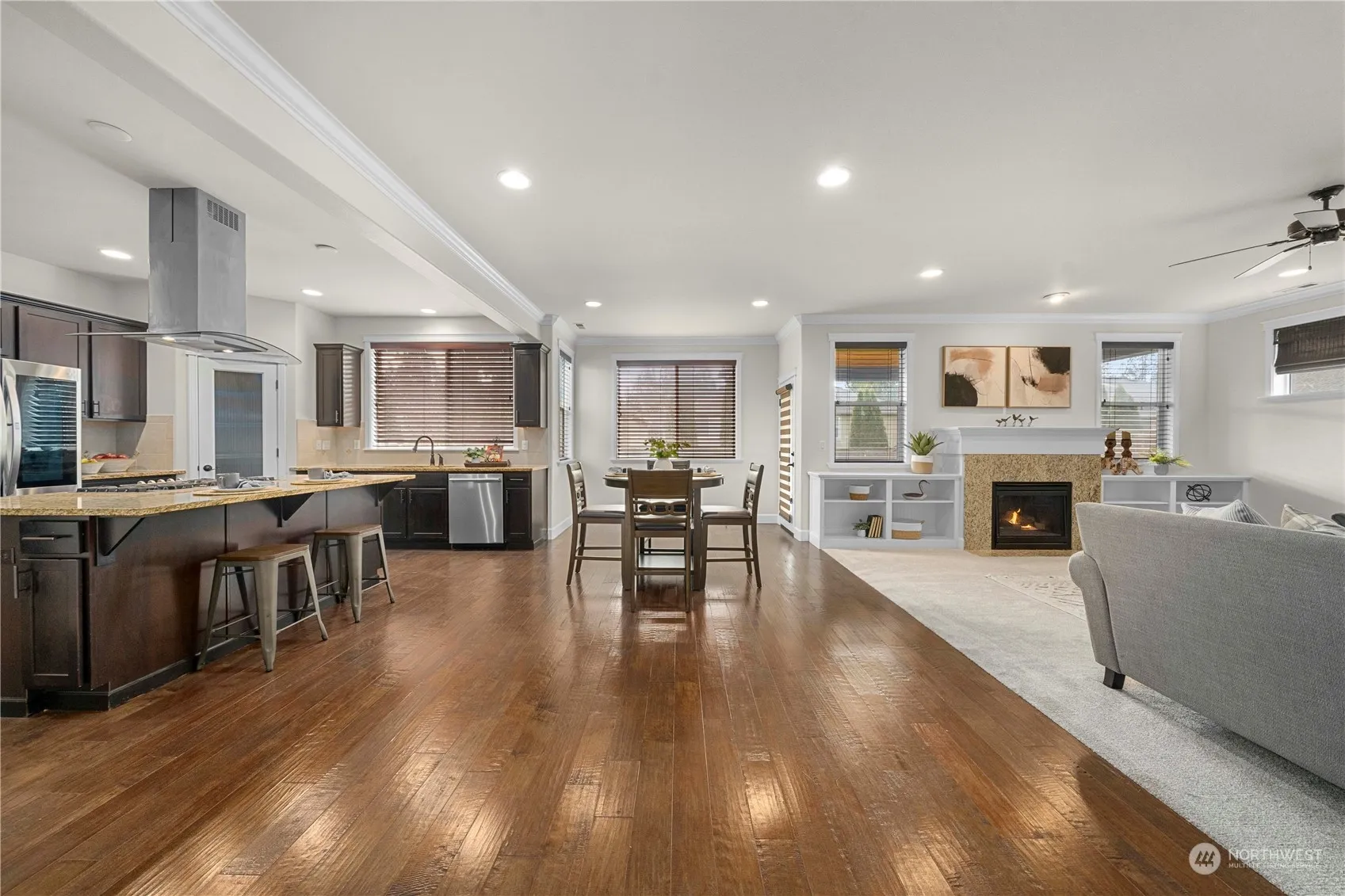 Welcome to Highlands at Cedar Downs! This stunning home offers a functional floorplan, showcasing quality craftsmanship. Just minutes to lakes, parks, miles of trails, and highways for an easy commute. The gourmet kitchen features slab granite counters, a large island with a gas cooktop, stainless chimney hood, and wall oven. Enjoy the expansive great room with built-ins, gas fireplace & wrought iron railing. Elegant details include slab granite in all baths, stone tile accents, hardwood floors, crown molding & wainscoting. The luxurious primary ste boasts a cozy fireplace, walk-in closet with built-ins, and spa-like bath. A/C! Outside, relax in the private, landscaped yard or on the covered patio & enjoy the covered patio. Tahoma schools!