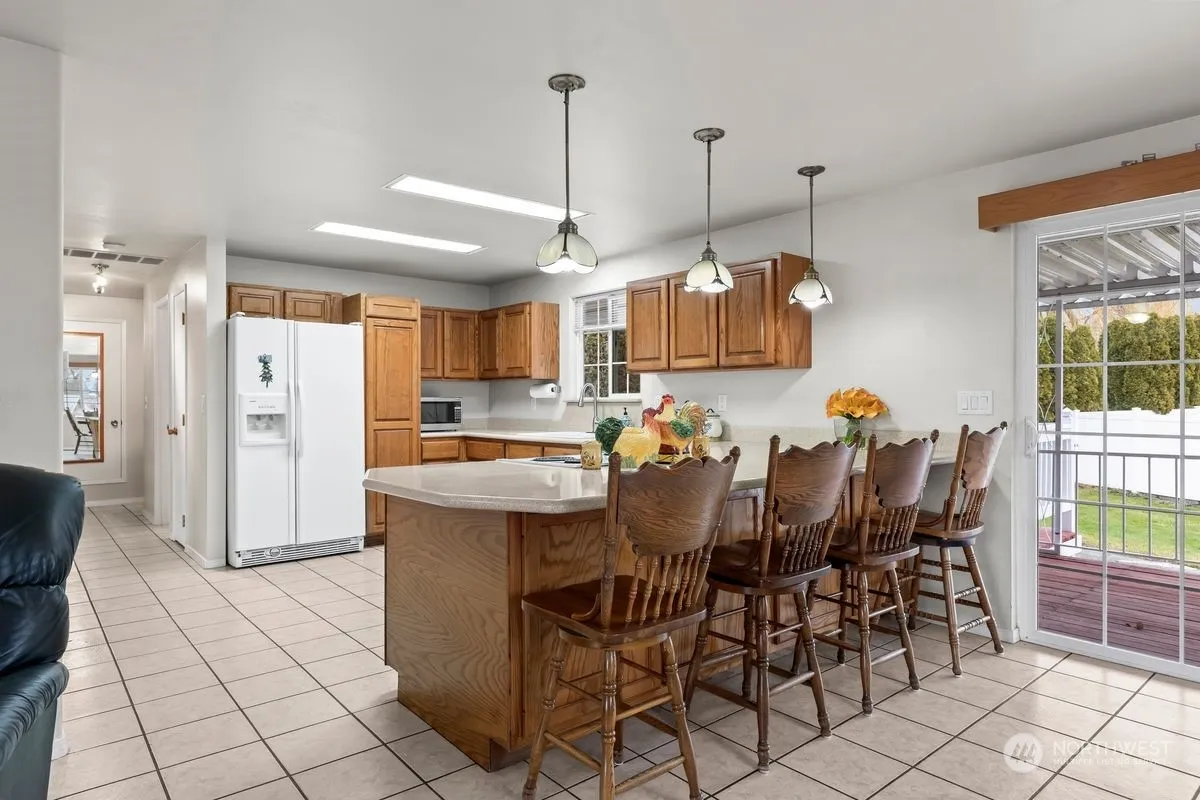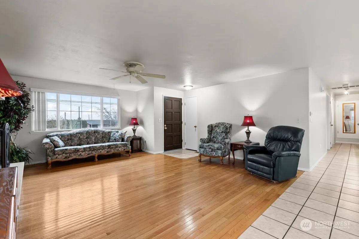 This spacious 4-bedroom, 3-bathroom split-level home offers incredible versatility with two distinct living spaces, perfect for multi-generational living or rental income. The main level features a bright living room with hardwood floors, a cozy fireplace, and seamless flow into the dining area and kitchen with ample cabinetry and counter space. The lower level includes a private entrance, additional living area, bedroom, and bath – ideal for extended living or guests. Outside, enjoy the covered patio, low-maintenance landscaping, and a two-car garage with wraparound driveway for extra parking. Located in a quiet, convenient area near schools, shopping, and amenities, this move-in-ready home offers endless possibilities.