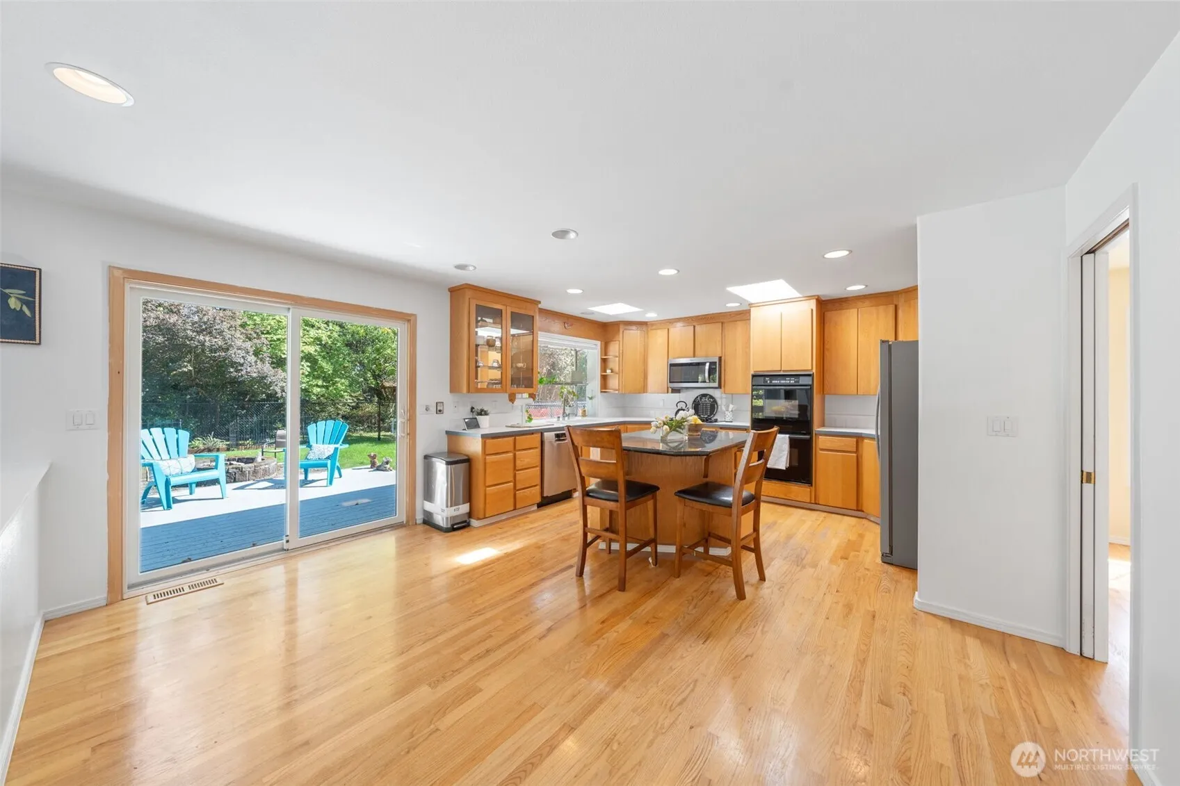 Nestled on a serene shy ½ acre along Clover Creek, this Lakewood retreat offers lush grounds, garden spaces, and a dog run. Inside, vaulted ceilings and abundant light create a warm, inviting feel. The primary suite on the main level opens to a private patio with a hot tub plug, ready for relaxation. Enjoy two versatile bonus rooms – one with a wet bar, another converted from the 3rd garage stall, perfect for work or play. The kitchen shines with a double oven for effortless hosting, while A/C keeps you comfortable year-round. Recent upgrades include a new roof (2021), exterior paint (2021), and fresh trim paint (2024). Plenty of room to play, gather, and grow – this home is ready to welcome your next chapter.