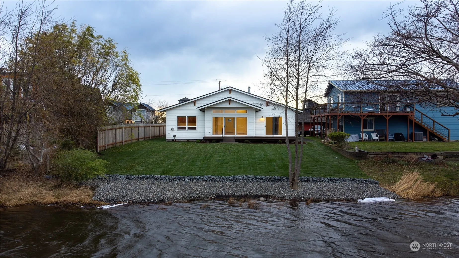 Welcome to your own waterfront oasis. With large windows in the living room and kitchen you will catch all the sunrises on the lake with your morning coffee. This 3 bed and 1.75 bath home is move in ready, boasting a large kitchen island, tall vaulted ceilings, floor to ceiling tile in master bathroom, walk in closet, and backyard access through master and living room. The large backyard leads right into agate lake where you can fish and enjoy the outdoors right in the comfort of your own home.