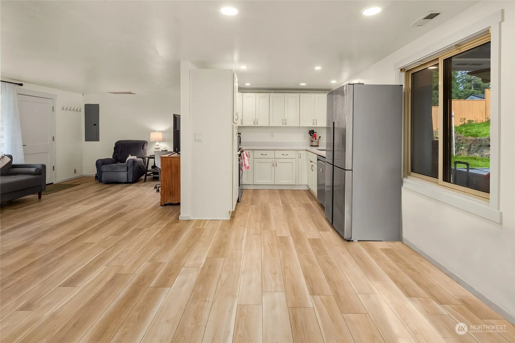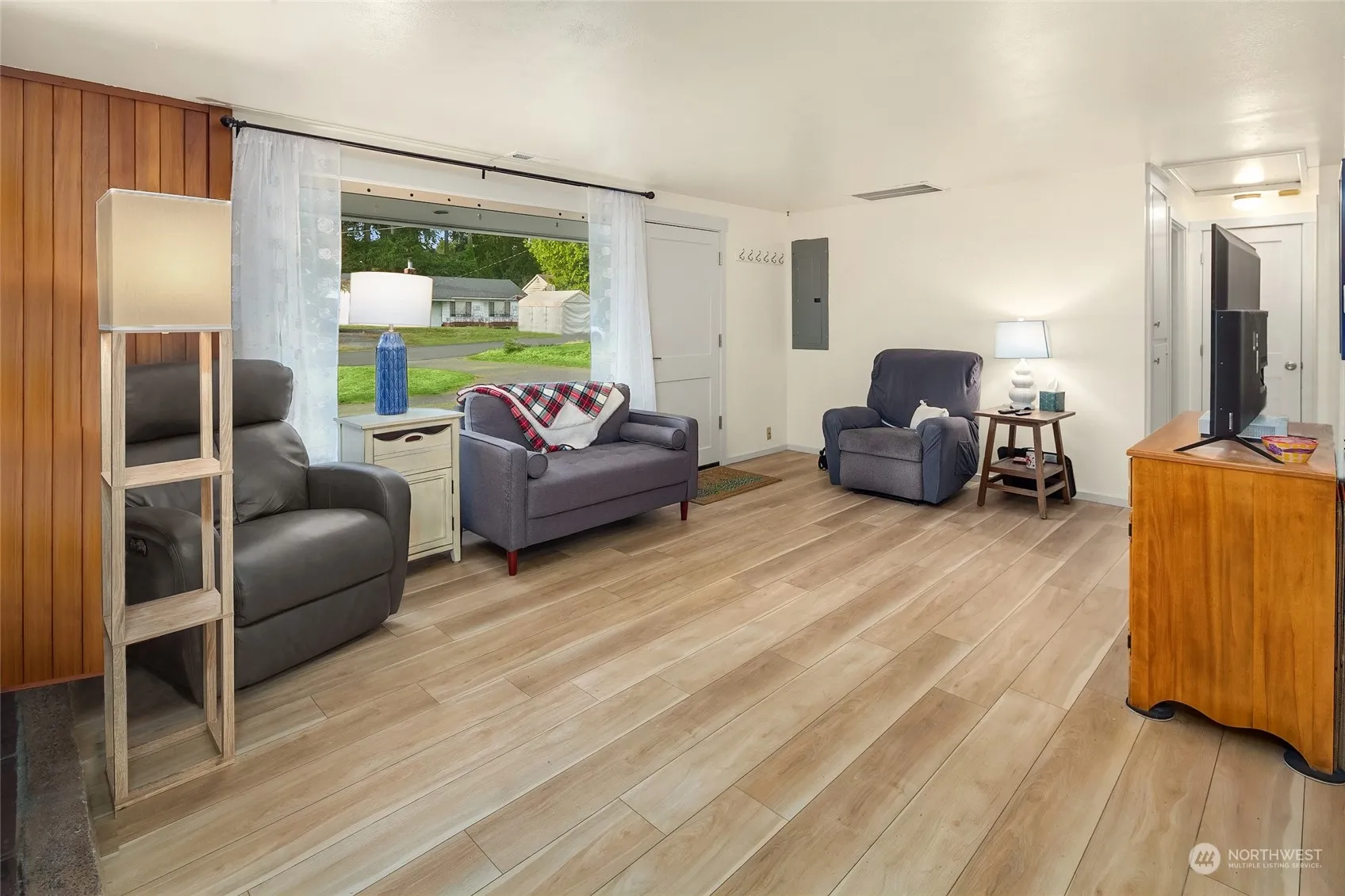 Start off the New Year in this updated Mountlake Terrace home. Good Sized bedrooms and extended living area make this home live large. Enjoy worry free living as floors, kitchen electrical, heat pump w/AC, breaker box, interior/exterior paint were all updated in 2022 as well as a new roof and gutters. All permits and inspections completed. Semi-Circular Driveway makes parking a breeze for you and your guests which you’ll entertain in the great back yard space. Spectacular location with Easy access to I-5, walking distance to MLT Light Rail Station and tons of amenities. Perfect opportunity for first time buyers or those looking to downsize. Oversized lot and RS-7200 zoning also offers great development potential. Welcome home!