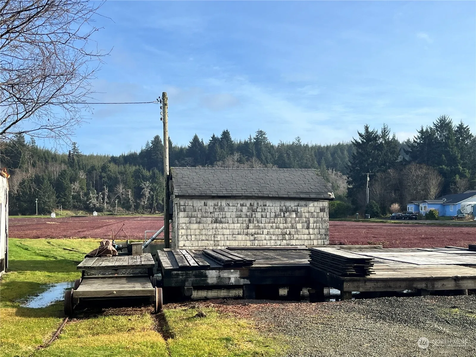 Well Maintained Ocean Spray Cranberry Bog with a mixture of McFarlin & Stevens Berries. Bog acreage is 2.88 acres. Total acreage is 3.35 acres. There is a old 616 SQ Ft home which is a tear down. Another platform that was the base of an old warehouse. , A 280 SQFT Garage and a pump house , with a sand point well and an irrigation pond,. Pond was pumped out in 2020. . Fresh Fruit product with Substantial yield ! This an excellent investment .