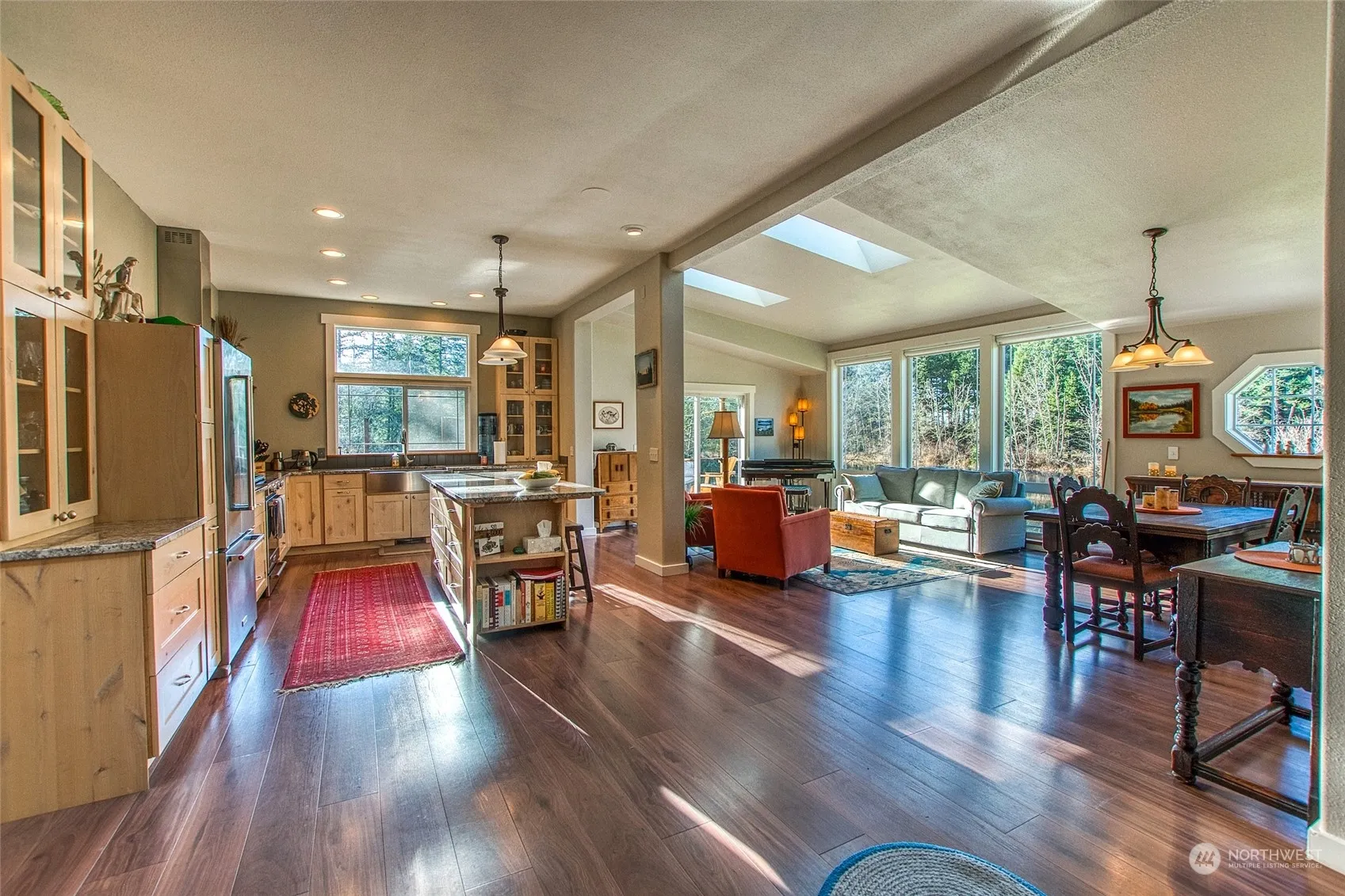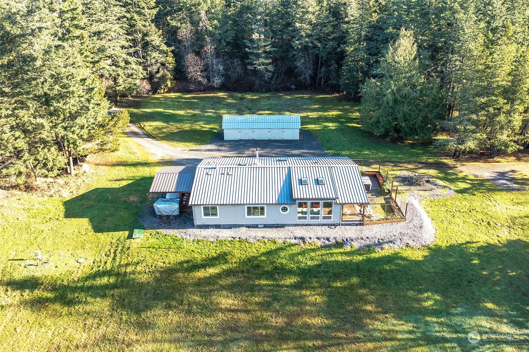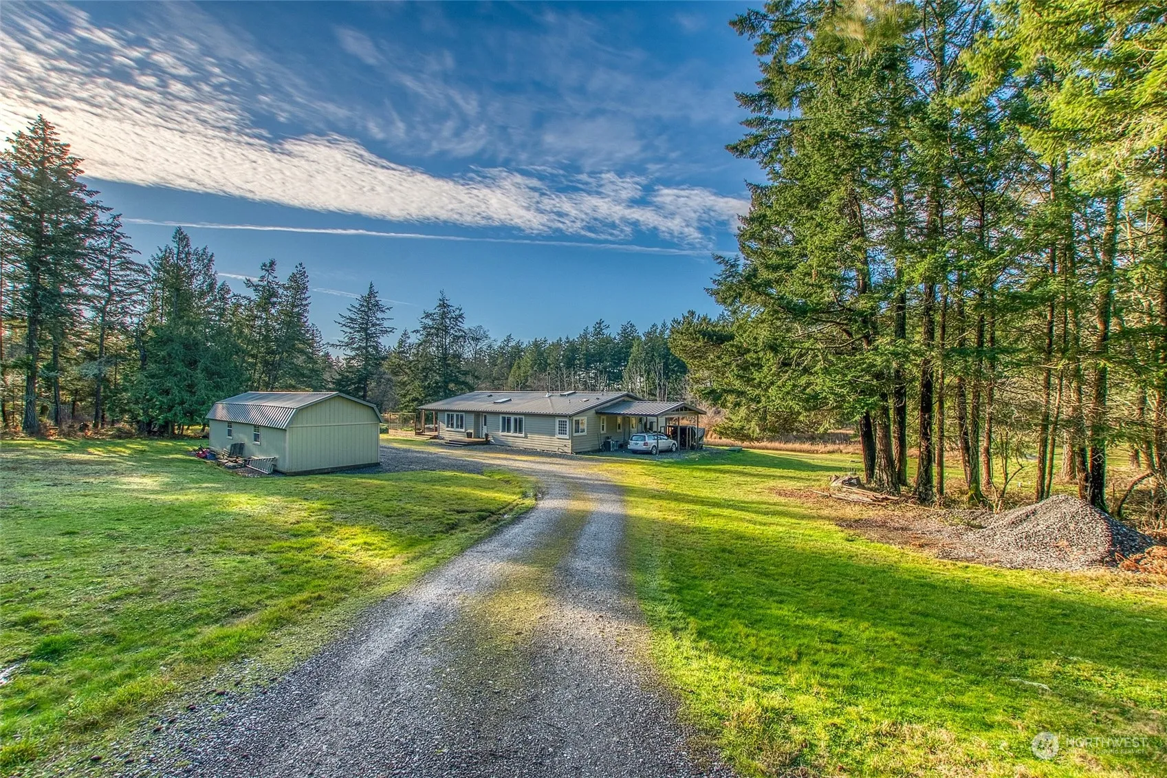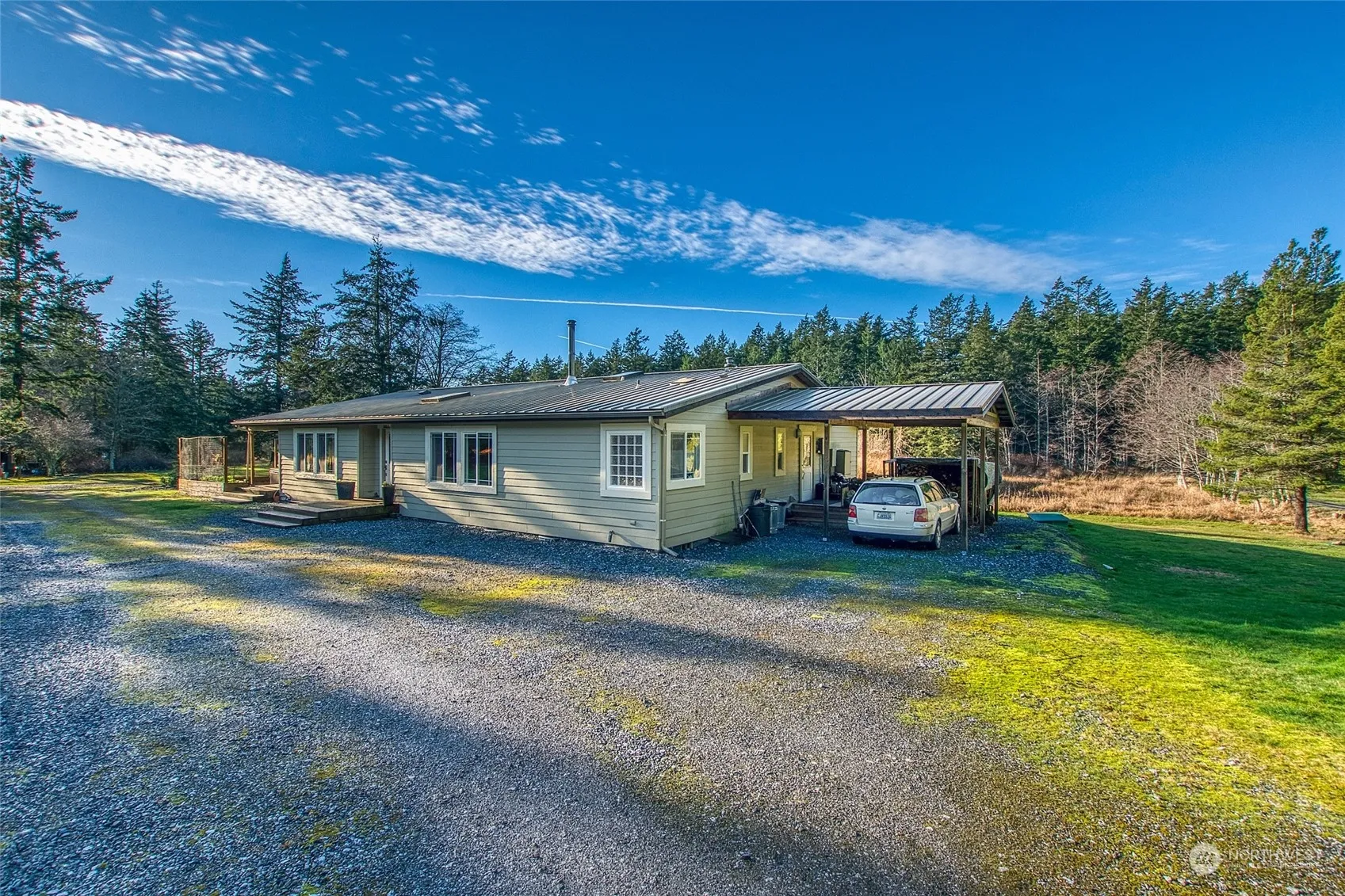 Open views to active wildlife on a 2 acre pond from this well maintained single level 2004 Skyline manufactured 3 bedrm/2 bath home in Victorian Valley between the ferry landing & Eastsound Village. Five acres of level usable land w/ fenced garden, hot tub, Heritage Portable Barn and plenty of space to play. Tasteful renovations in 2015 include a new kitchen with granite counters, KitchenAid dual fuel & dual oven range, custom alder cabinets; new cork flooring & metal roof. The large primary suite has a walk-in closet & separate soaking tub/shower area. Separate den/office, carport, skylights /solar tubes, Rock Island fiber, tankless water heater, and private well. The pond has carp, bass, and turtles. Seller will finance with 50% down.